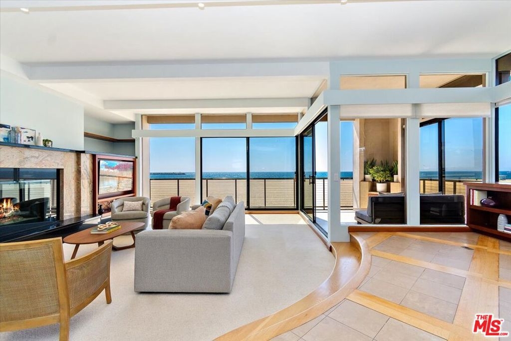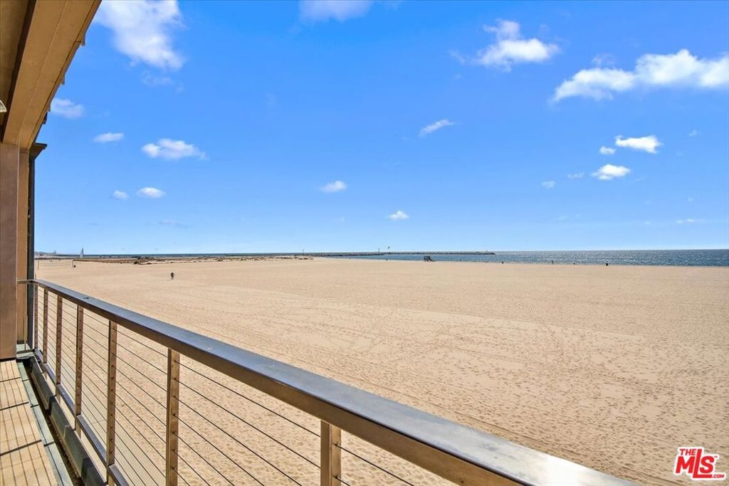 Unobstructed expansive North Corner with 2,270 square feet on nearly all one level. Gorgeous floor plan with wow factor 30 foot wide living room featuring custom built ins throughout. Ocean front Living room, patio, dining, kitchen and built in office all with panoramic views from Malibu to Catalina. Hear the waves all night and spend the day watching boats come in and out of the main Marina channel. The primary bedroom is private with beautiful organized closet space, en-suite bath with walk-in shower. The second bedroom is en-suite with an ocean view, walk in closet and many windows bringing in great light. Guest 1/2 powder room, large sauna and stack laundry inside. 3 car parking with a huge walk in storage space. A rare opportunity to live in this incredible community, close to the channel, canals, wonderful restaurants and the best beach in LA!