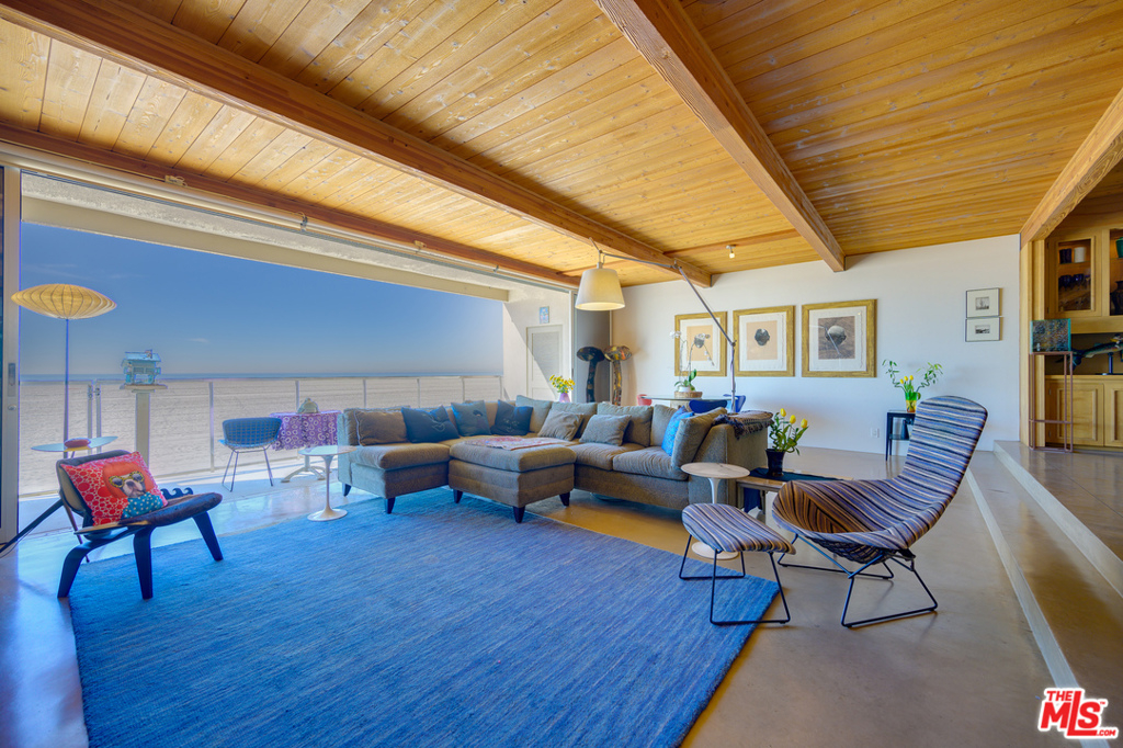 A VERY RARE FIND. This oceanfront location is one of the best maintained buildings with reserves on the beach. 30 feet of ocean frontage w/ unobstructed ocean views from Malibu to Catalina. Wall-to-wall glass opening onto a huge oceanfront balcony boasting direct beach access with steps to the sand. No continuous sidewalk or nearby parking lots result in a very quiet, private and tranquil setting. IT'S PARADISE. Indoor-Outdoor lifestyle w/ polished cement floors throughout, step down living room with stone fireplace plus dining and office built into the oceanfront great room. Oceanview cooks kitchen w/ stainless appliances and granite countertops. The master bedroom has very high ceilings, walk-in closet plus steam shower. The second bedroom is en-suite w/ walk-in closet. Laundry room + lovely updated powder room. 2 car garage parking + 1 outside + storage. A great location for year-round walks, bird & dolphin watching + stunning sunsets from the comfort of your VERY PRIVATE beach pad.