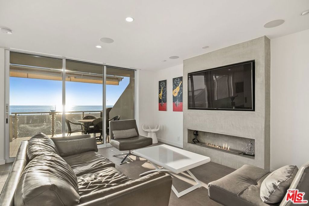 Dazzling, sleek & sophisticated remodeled 2 bed, 2 bath condo with beautiful designer finishes throughout. Breathtaking ocean views from the master bedroom & living area. Upon entry the majestic center island catches your eye adorned with gorgeous textured custom cabinets, Bosch appliances & a wine fridge. A custom Bosch fridge blends in perfectly with white cabinets that match the countertops. Gray stone tile floors complete the stunning thematic color contrasts. Master suite features a double sink on a beautiful white vanity with a custom mirror that maintains your view of waves crashing on the shore. Walk-in showers feature dual showerheads. LED lights & elegant gray plaster Eco-Smart fireplace set the mood. Dine al fresco on your oversized patio to dramatic sunsets. In ceiling speakers complete the perfect entertaining setup. Custom built-ins in every closet. 24 unit secure remodeled building with low HOA, security cameras & gated tandem parking. Truly the dream getaway!