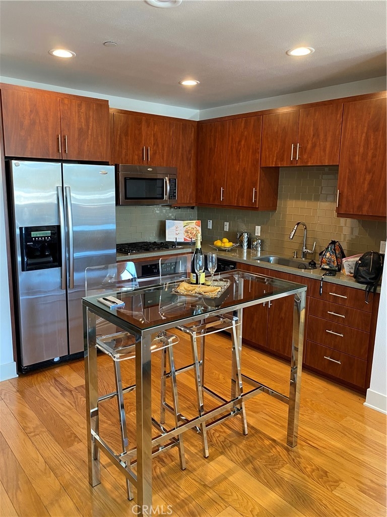 *Low $420/mo. HOA *High ceilings *3rd floor (2nd highest floor) *Large bedrooms and walk-in closets *Private balcony *No shared walls with neighbors to left or right *New carpet, paint, and recessed lights* Welcome to the heart of the Marina Arts District, centrally located in Westside LA near surrounding neighborhoods Marina Del Rey, Playa Vista, and Culver City. This is your opportunity to own an architecturally stunning, upscale 3rd-story (2nd highest floor in the building) condo. With no shared walls with neighbors, this modern home provides you with a peaceful and calming environment amidst the vibrant energy of Los Angeles. The unit is move-in ready with brand new carpets, freshly painted walls, and new recessed lights. Walk through the front door to a light and bright unit offering an airy, open living concept with high ceilings, recessed lighting, plantation shutters, as well as hardwood flooring. To your left is a gourmet kitchen with Caesarstone countertops, a contemporary glass backsplash, stainless steel appliances, and ample cabinet space ready for the chef and his or her guests. To the right is a large closet that houses the in-unit washer & dryer with ample storage space. Straight ahead is the living room that’s great for entertaining guests or relaxing. The sliding glass doors lead to a private balcony offering some intimate outdoor space to enjoy the cozy mornings, sun-soaked afternoons, or breathtaking California sunsets. The large primary suite has large windows, a spacious walk-in closet, and an en suite bath with Carrera marble tile, double vanity, and a glass-enclosed marble rain shower. The additional bedroom also has large windows and a large walk-in closet. The second bath also has marble flooring and a matching marble glass-enclosed shower/tub combo. The newly renovated outdoor community courtyard has a built-in BBQ, fireplace, shade structures, and dining & lounge areas surrounded by newly planted trees and plants. The gated underground parking garage has dedicated two spots for this unit, ample guest parking, and security cameras. Walk outside and you're a short walk to many restaurants, grocery stores, movie theaters, a high-end fitness club, and weekly farmers market. It's also a short bike ride to the beach, bike trails, Marina Del Rey parks, Abbot Kinney, and all the Westside has to offer.