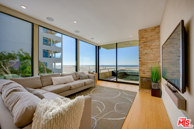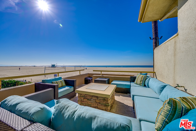 Spectacular unobstructed south corner with an enormous balcony - Rare 3 bedrooms right on the sand in one the most incredible locations on the Marina del Rey Peninsula. This stunning space has floor to ceiling windows all along the south wall with views to Catalina. There is also a lovely grassy side yard to use and look out on. The living room is open to the dining and kitchen and leads out to an outdoor deck with built-in fireplace, truly an extension of the living room. The kitchen is open with all stainless appliances and granite countertops. Each bedroom is spacious and the master has a walk-in closet and ensuite bath. The square footage includes the outdoor deck.