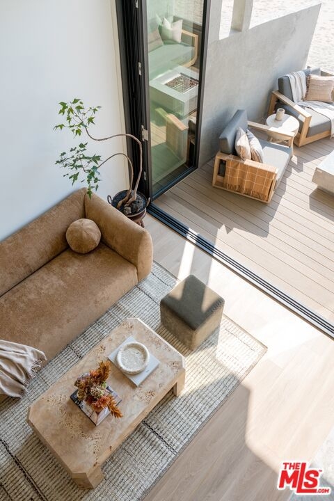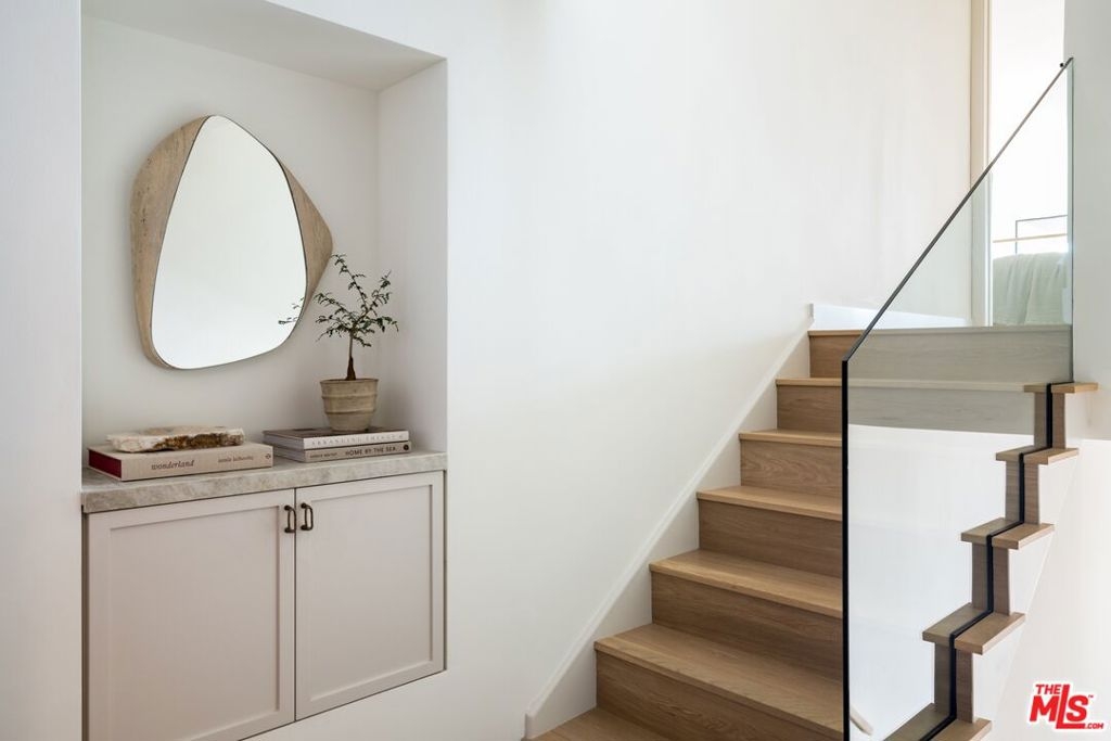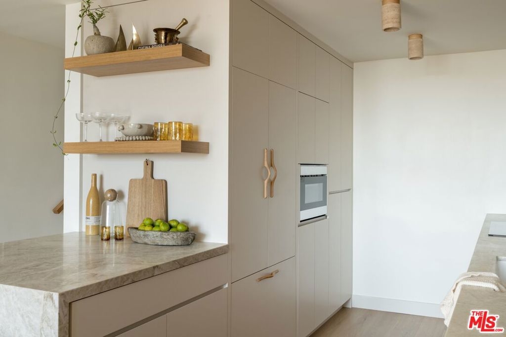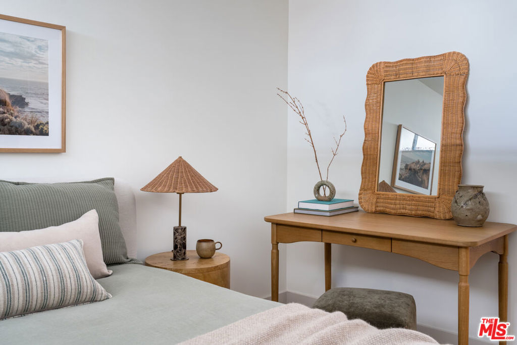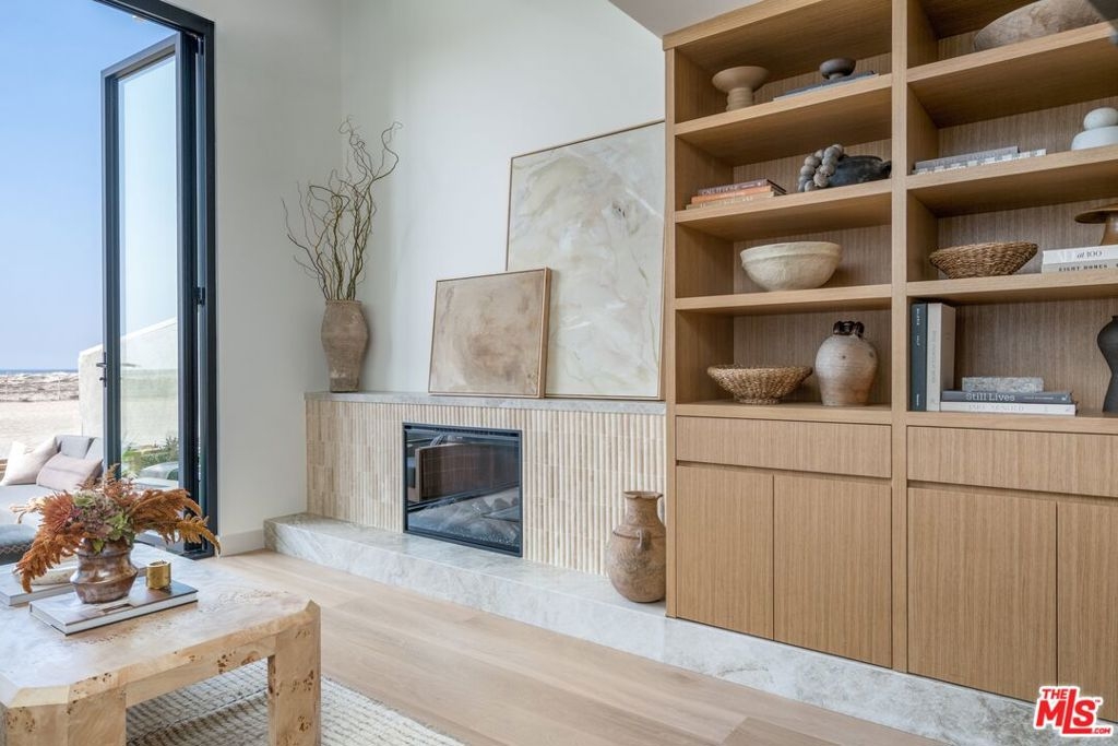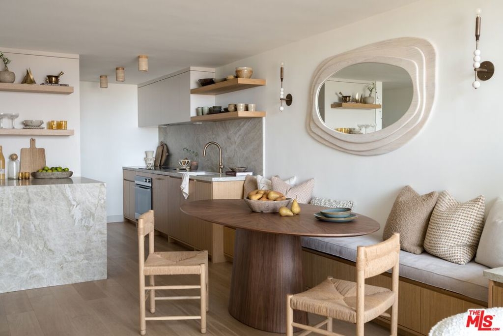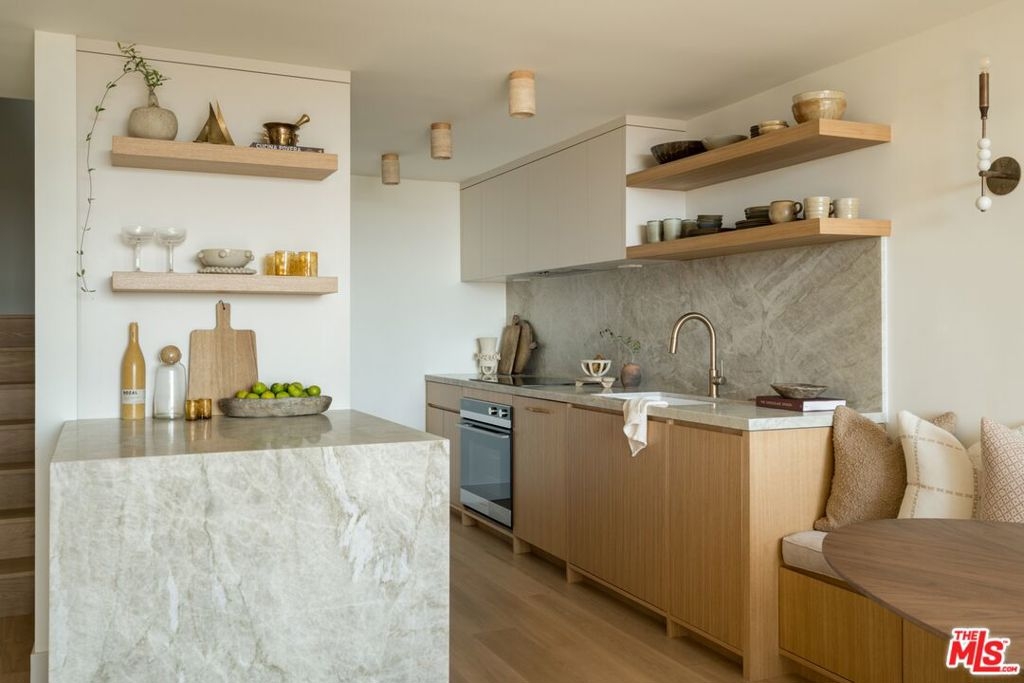 Experience coastal luxury in this stunning oceanfront condo, where high ceilings and elegant finishes create a serene beach retreat. Enjoy breathtaking views of the ocean and marina from your spacious waterfront patio, seamlessly accessible from the living area with a brand new La Cantina Folding Door system, allowing the fresh sea breeze to flow freely to create the perfect indoor/outdoor aura, ideal for entertaining. Step inside to discover brand new hardwood flooring throughout, enhancing the unit's modern aesthetic. The gourmet kitchen is a chef's dream, featuring exquisite Taj Mahal countertops and backsplash that extend to the fireplace hearth. Equipped with top-of-the-line appliances including a brand new Fisher and Paykel electric cooktop and oven, a French Door smart refrigerator, Bosch dishwasher, Zephyr range hood, and Sharp microwave this kitchen is both functional and stylish. A new Delta faucet and sink, along with custom built-ins, a cozy dining nook, and elegant fireplace shelves designed by Nu Design, complete this culinary haven. The kitchen showcases white oak flat slab doors with integrated finger pulls for a sleek finish. Relax by the brand new electric fireplace by Modern Flames, set against a designer tile surrounded in Beige Travertine by Cle Tile, providing warmth and ambiance. Both bathrooms have been exquisitely updated with luxurious stone flooring. The guest bathroom features a custom oak vanity, Phylrich plumbing fixtures, a new bathtub, and a beautiful zellige tile surrounded by Zia Tile. The primary bathroom offers a custom oak vanity, Watermark plumbing fixtures, and a stunning shower wall treatment in Tadelakt plaster finish, creating a spa-like atmosphere. As you ascend the glass staircase with a solid oak wood cap, you'll appreciate the thoughtful design and craftsmanship throughout. The primary bedroom boasts custom closet built-ins by Nu Design and premium hardware by Manzoni, maximizing space and elegance.The patio, adorned with all new TimberTech composite flooring and a stylish Rejuvenation light fixture, is perfect for outdoor entertaining or simply soaking in the tranquil ocean views. Enjoy the privacy and exclusivity of this beachfront haven, where elegance meets the beauty of nature. Premier location right near the jetty. Watch the boats come in and out of the harbor. 2 parking spots across from each other. Don't miss the opportunity to own this exceptional coastal gem! All furniture and accessories in the unit were carefully curated and hand picked to go with the design. Staged by California Coastal and all available for purchase.