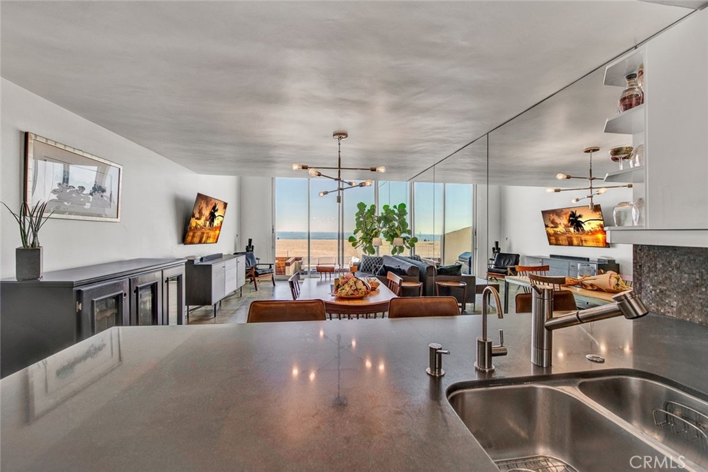 LOCATION LOCATION LOCATION…. Very seldom does a home become available where you can just step out onto the sand and surf from your own private patio located on the Marina Peninsula. Just a few short blocks to the Pier, restaurants and shopping. Ocean views from the Master Bedroom, kitchen, living room and dinning room with plenty of natural light flowing in. High end contemporary kitchen with Wolf Appliances, Sub-Zero refrigerator recessed lighting and stone counters. Vaulted Two story ceilings in the open living area make this condo feel grandiose.