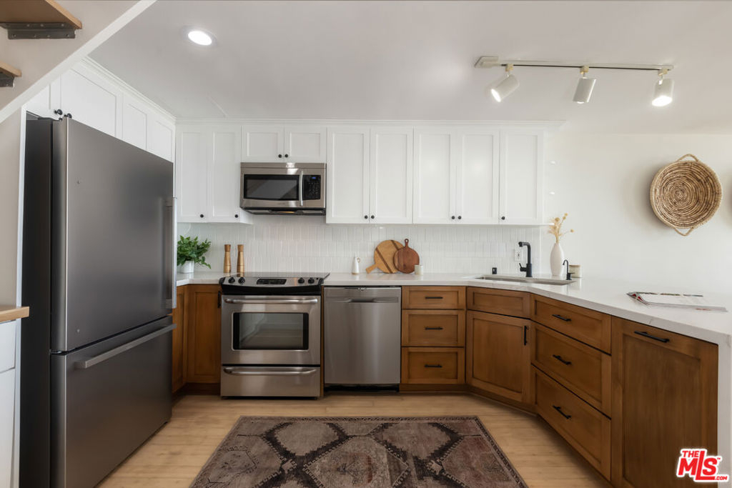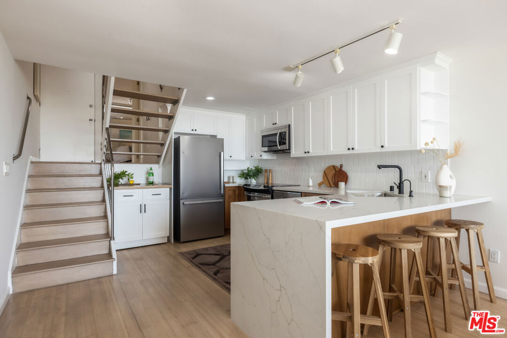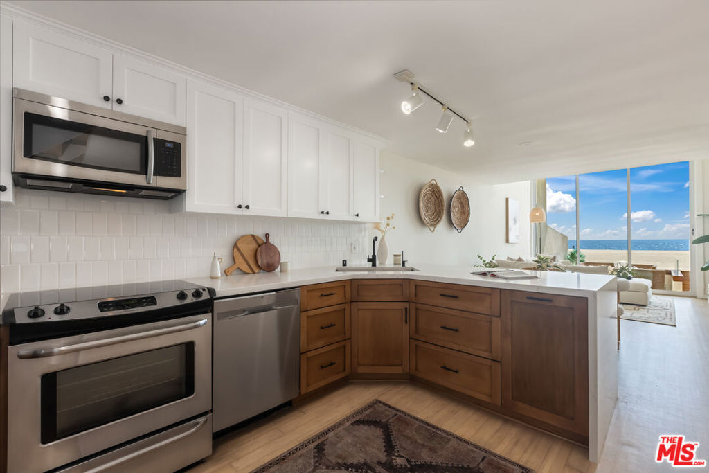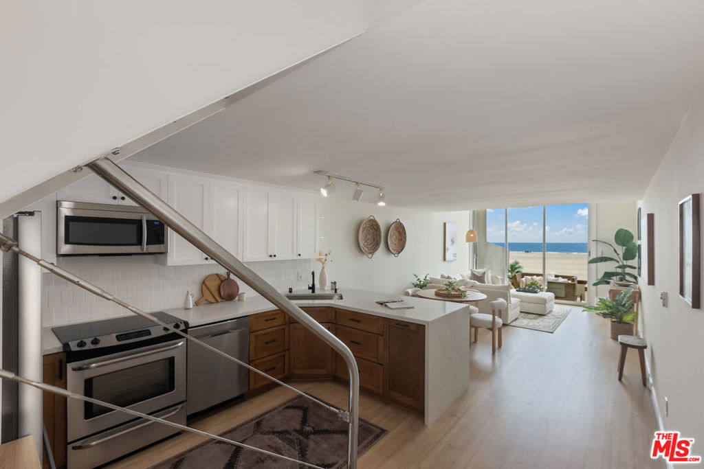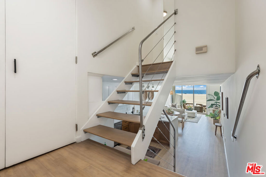 If the ocean is your sanctuary, this sleek ocean front, tri-level condo with unobstructed breathtaking views is a dream come true. Located directly on the sand - just steps from your patio door, this newly updated, modern condo captures the essence of beach living, epitomizing the California indoor/outdoor lifestyle with casual sophistication. Designed to showcase the stunning ocean views, the property features soaring high ceilings, floor-to-ceiling windows, and natural bamboo flooring. The expansive open-plan main living area flows seamlessly to a generous private deck, perfect for dining and entertaining.The updated kitchen is a chef's delight, boasting gleaming wood cabinets, quartz countertops, and all stainless-steel appliances. Ascend to the second level to find a comfortable guest bedroom and bathroom. The third level is dedicated to the primary suite, offering panoramic ocean views and an ensuite bath. Parking is a breeze with two secured garage spaces equipped with a high-speed EV charger, plus an additional reserved exterior space, totaling THREE parking spaces; a rare and valuable find in the Marina. 7 Fleet is an architectural gem located in the exclusive Marina Peninsula, just moments from the Marina, Venice Beach/Pier, and the vibrant Washington Square scene for dining and entertainment. This is the one you've been waiting for!