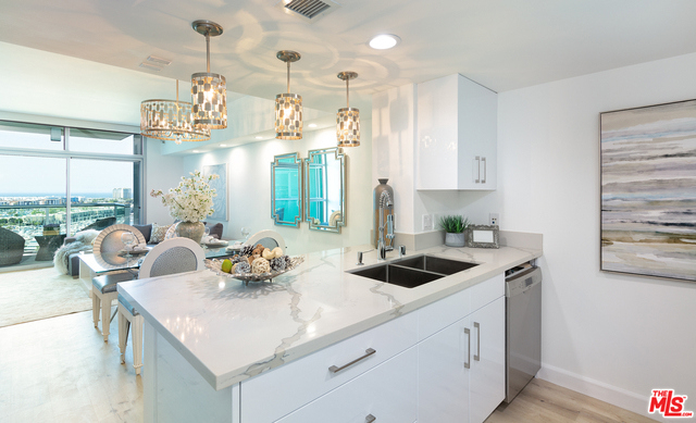 Move right into this gorgeous condo and live the luxury coastal LA lifestyle in this west facing completely renovated and upgraded 1 bedroom plus den, 1.5 bath unit with head on Marina and Ocean views in the full service Azzurra. Open floor-plan with a brand new Gorgeous White Glossy Kitchen, Appliances, Flooring, Lighting, Fixtures, and so much more. Beautiful floors in all rooms, stainless steel appliances, great natural light, floor to ceiling windows, large bedroom with walk-in closet, new side by side washer-dryer, electric blinds. Resort-style amenities including 24 hour valet parking for guests, 24 hour front desk and security, concierge, rooftop spa and sky-lounge with panoramic views, outdoor kitchen with BBQ, pool & spa, media lounge, fine art collection, indoor-outdoor fitness center and more. Easy proximity to the Marina, beaches, bike path, dog walk, shops, restaurants, dine-in movie theater, Venice beach & LAX.