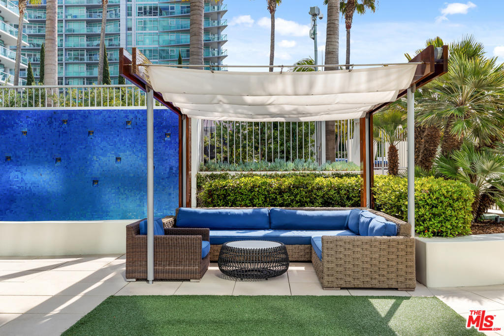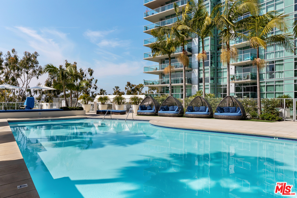 Beautiful West facing marina front condo.Extremely private. Located in full service Azzurra building. Beautiful entry , open floor plan with living, dining and nice patio overlooking the park with beautiful trees and marina views. Beautiful kitchen with white cabinets and stainless steel appliances. Nice master bedroom with walk-in closets, floor to ceiling glass with breathtaking views!! Nice size 2nd bedroom or office. Live in Luxury building offers pool, spa, state of the art gym, conference room, screening room, yoga studio and roof top sky lounge. Enjoy resort living in the marina with close proximity to LAX, shopping, restaurants, movie theaters, bike path, beach and much more.. Excellent value must see...