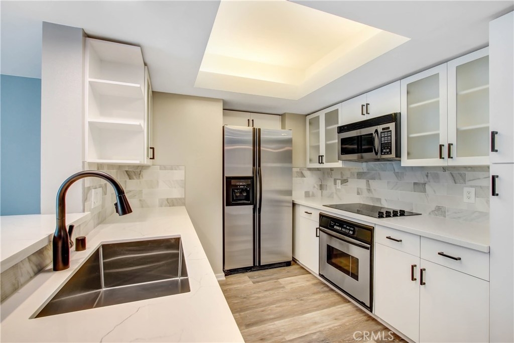 Highly Desirable Azzurra unit with 2 separate 1 car parking spots (no moving cars to get out)!!! This unit has been completely remodeled with the most contemporary modern design esthetic. Beautiful woodlike waterproof laminate floors throughout the entire unit, Stunning matching Quartz countertops in kitchen and bathroom, set off by beautiful matching backsplash. New paint and baseboards throughout, new cooktop, new contemporary faucets in kitchen and bathroom, and renewed white painted kitchen cabinets. Large master suite with a large walk-in closet. HOA fees include cable w/HD T.V, internet, water, trash, EQ insurance & and a ton of resort-style amenities -24 hr valet parking for guests, 24 hr front desk & security, rooftop spa & sky-lounge with amazing panoramic views, outdoor kitchen, a huge sparkling heated pool & spa, business center, media lounge, indoor/outdoor professional fitness center with a training studio, plus much much more. Unit is ready for it's new owner who wants that high class ocean vibe, with full on security, and comfort.