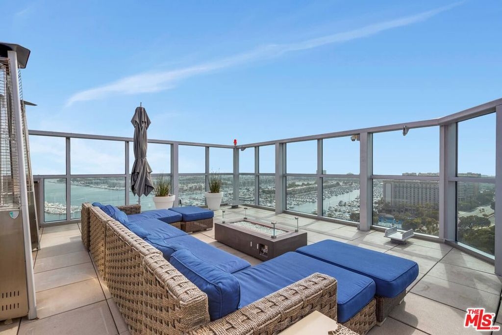 This beautiful and spacious 1 bedroom features a captivating view from floor to ceiling glass and balcony. The open floor plan has only one shared wall, 9ft ceilings, a marble entry, gorgeous wood flooring, granite counters, stainless appliances, plentiful closet space and a new air conditioner. Experience year-round full-service amenities including 24-hour security, concierge, resort-like pool with cabanas and spa. Entertain at the amazing rooftop Sky Lounge with fireplace, grills and stunning ocean and city views. Work out right at home in the state-of-the-art fitness center and Yoga/Pilate's studio. Dedicated parking spaces for 2 cars, complimentary guest valet and so much more. The very best of Marina living with nearby restaurants, shopping, movie theaters, beaches and LAX. Schedule your private viewing now!