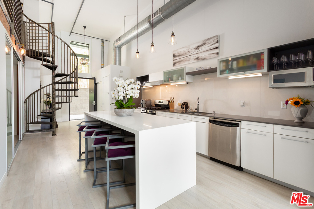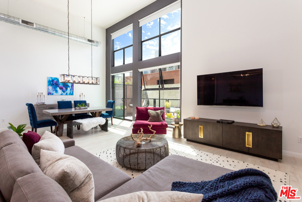 One-of-a-kind SoHo-inspired architectural loft where aesthetics meets functionality to create the perfect combination of industrial chic and California beach living. This recently renovated industrial loft features 17 ft floor-to-ceiling windows and an open concept layout ideal for entertaining. Freshly painted throughout, this unit is made up of 2 bedrooms and 2 modern bathrooms. The renovated kitchen includes an Italian porcelain backsplash and a custom-built island with quartz countertops, generous storage space, and SS appliances. Bathrooms include upgraded porcelain tiles and new LED lighting. This unit also includes In-unit laundry, custom closets for all your storage needs, and 2 tandem parking spots with EV charging stations. The loft boasts an outdoor main level patio and a community rooftop deck providing stunning panoramic and sunset views. Minutes from Abbot Kinney Blvd and the beach, it's a New York state of mind with the California sunshine!