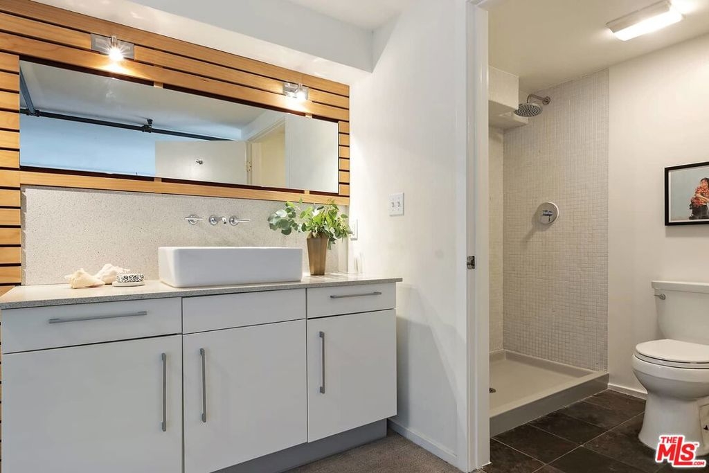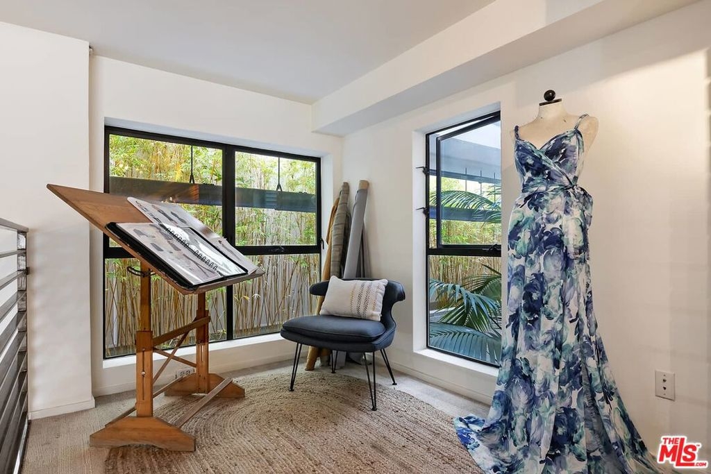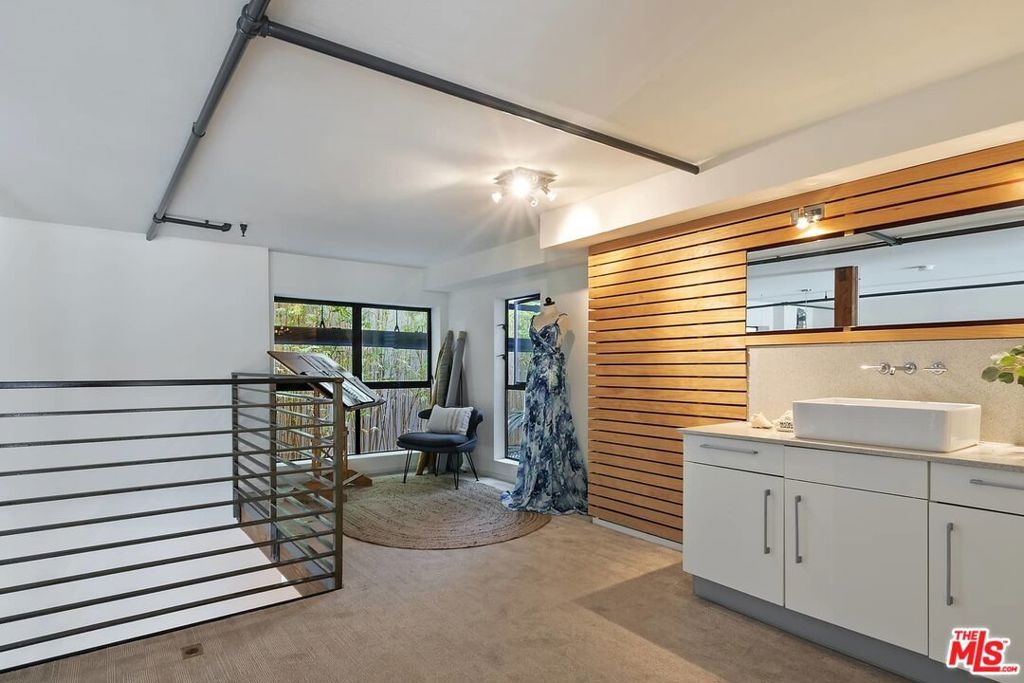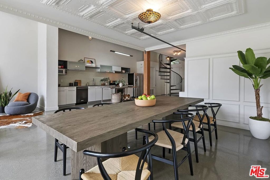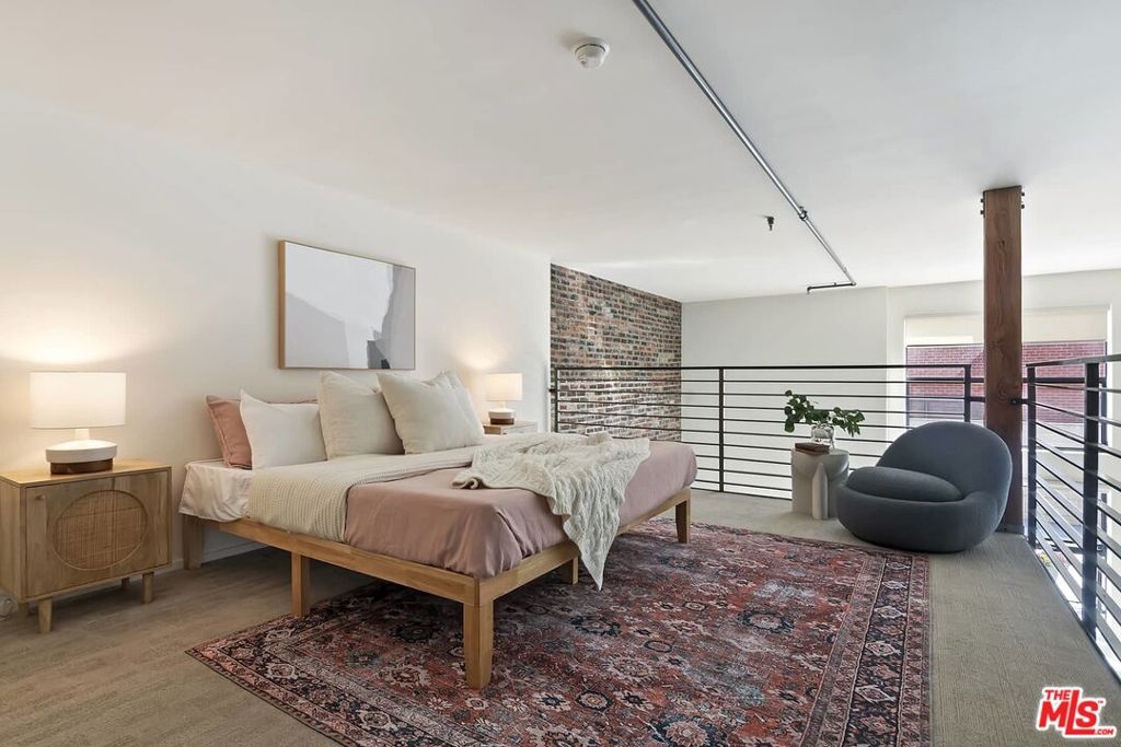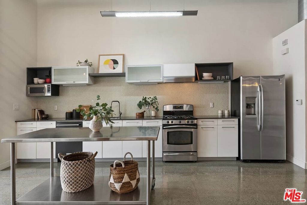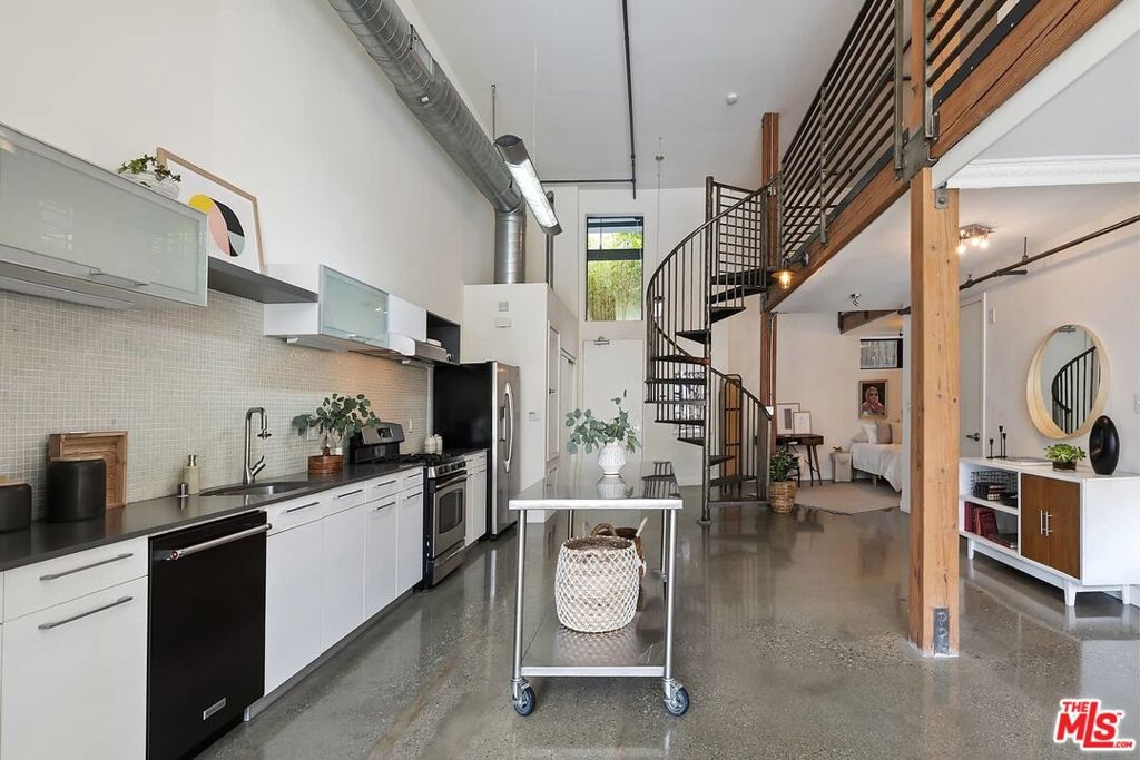 This expansive double-height unit is over 1700 square feet, with 17-foot ceilings and huge windows that flood the interior with light. Experience true loft living in the Del Rey Lofts, the Marina Arts Districts premier address. The space can accommodate two bedrooms or be used as a live/work space. The first floor unit provides easy access and an inviting outdoor patio space. Unit has shiny polished concrete floors throughout and dazzling tile backsplashes/wall treatments in the kitchen and dual baths. A spectacular Mezzanine area upstairs makes a luxurious principals retreat with own bath and a perfect Peloton or WFH nook. Lower level has full bath, room for a bedroom (can be enclosed) with ample closet space, a huge dining area with decorative wall panels, and chefs kitchen with tiled backsplash and sleek stainless steel appliances/fixtures and a mixture of open and enclosed shelving.