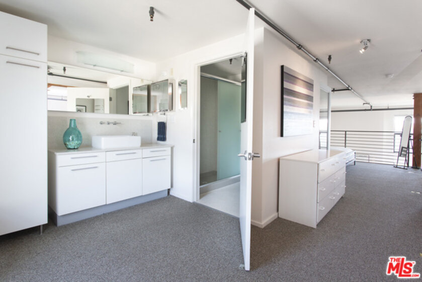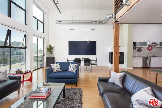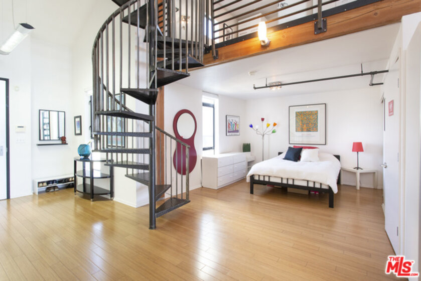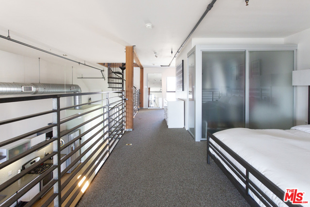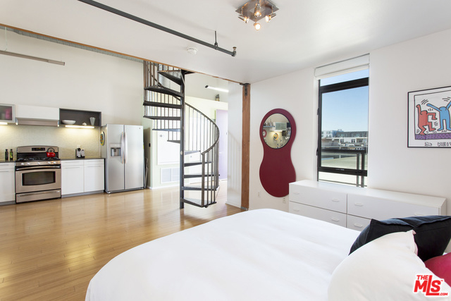Stunning and meticulously maintained top floor industrial loft with massive windows, soaring ceilings, a corner fireplace, circular staircase and a private rooftop deck. This bright unit is made up of 2 loft style bedrooms and 2 modern bathrooms; one on entry level and the other on the second-floor mezzanine. The open concept layout offers the perfect flow for entertaining and features a spacious living/dining area and a kitchen with Caesarstone countertops and stainless steel appliances. The circular stair adds architectural interest and the private rooftop deck affords incredible views of L.A. In-unit laundry, bamboo floors and 2 tandem parking spots round out this Westside gem. Located in the Marina Arts District, enjoy accessibility to the Marina Marketplace shops and restaurants as well as proximity to the Beach, LAX, and freeways.