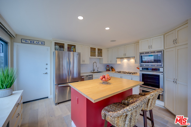 Unbelievable ocean, channel and mountain views from this 2,315 square foot north corner with 2 spacious bedrooms + den + built in office + large dining space with 3 balconies. This is truly one of a kind, tastefully remodeled condo in one of the most cared for buildings on the beachfront in Marina del Rey. Custom kitchen open to the living room, den and built-in office with hardwood floors throughout. The master retreat has its own sitting room with fireplace, plenty of closet space and the ensuite bath boasts a separate tub and shower done in stone and tile. The second bedroom is also ensuite and has a spacious wardrobe. Laundry room with built-in storage, powder room, coat closet and a back door that provides beach access directly from the condo. Move-in with your toothbrush.