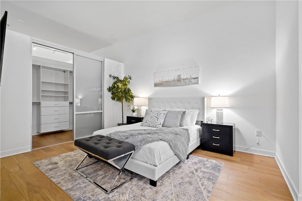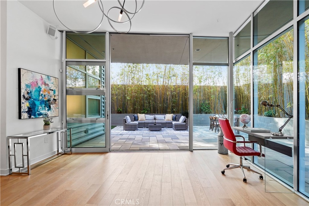 Presenting the crown jewel of Gallery Lofts in Marina Del Rey’s highly coveted Arts District. Unit 116 is truly a rare find with a massive approx. 1,500 sq feet of wrap-around outdoor space making this sleek and stylish condo feel like a single family home. Tucked away in the very back of the complex, this sophisticated unit offers unparalleled privacy + tranquility + an abundance of high-end upgrades and features not found in other similar units. Sellers spent over $60K remodeling the kitchen, built-in bar and second bedroom to perfection. Kitchen features custom luxury cabinets, Carrera marble double waterfall island with storage, an extraordinary Larmes light pendent dazzles above the center island, Liebherr refrigerator,Bertazzoni gas range, and Miele dishwasher. The dry bar features additional storage space, a wine fridge and Philips Hue LED Smart Mood Lighting which allows you to create the perfect ambiance with dozens of light settings via an app. Master bedroom with walk-in closet, master bath with over-sized soaking tub, separate shower, and privacy glass. The second bedroom has a fully enclosed ceiling, entry door, and automatic black-out shades. Offering complete privacy, the second bedroom can easily be used a home office. Towering 11FT Fleetwood sliding glass doors open to an enormous outdoor patio, creating an expansive and seamless blend of indoor-outdoor space. A magical and idyllic setting to relax or entertain year round. Building amenities include 2 parking spaces and plenty of guest parking, a lush common area with 2 outdoor kitchens, plenty of seating, a two-sided fireplace and Wifi. No attention to detail was spared in this extraordinary unit, ideally located 5 minutes to the 405 fwy, 15 minutes to Santa Monica, 15 minutes to LAX and a short distance to the Marina Marketplace, Abbot Kinney, and Venice beach.