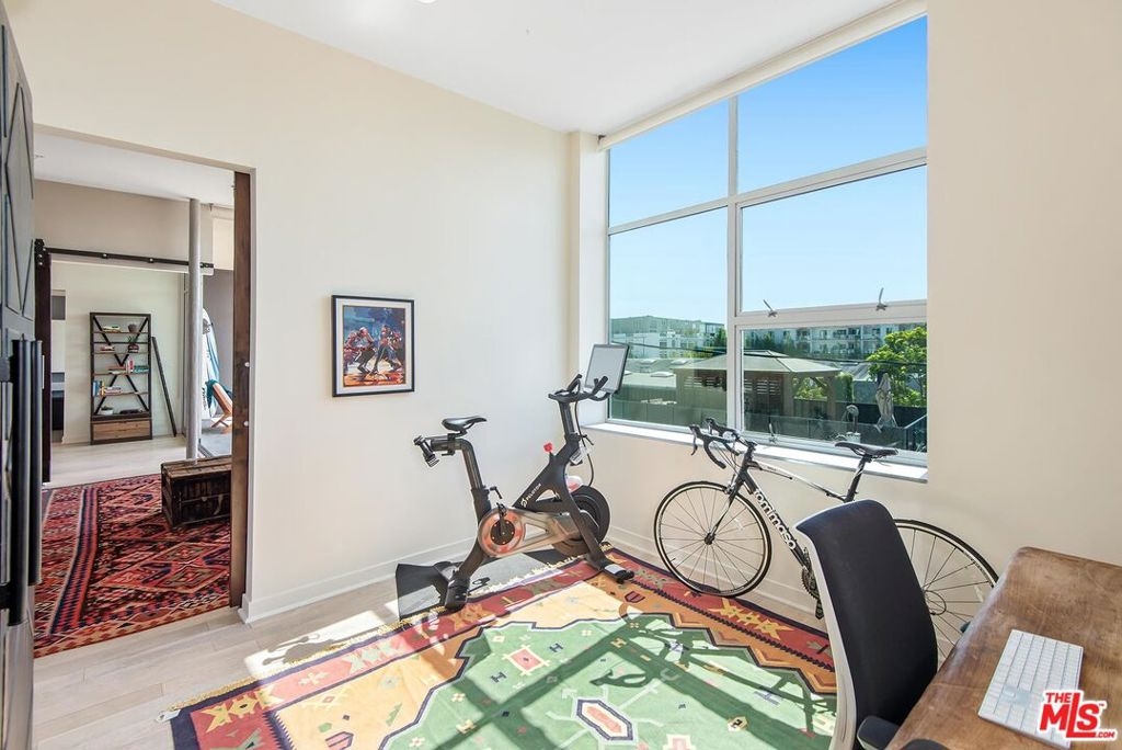 This gorgeous Marina Del Rey Gallery Loft offers fresh, contemporary, indoor-outdoor living bursting with style. Located away from the street, this unit boasts two large fully enclosed bedrooms, two well appointed bathrooms, and an open living space. Enjoy a convenient location, inviting interiors, and wonderful community amenities. Inside, floor-to-ceiling Fleetwood sliding doors let in abundant sunlight and light wood floors add warmth to the space. The main living area is an entertainer's dream with soaring 11-foot ceilings, a sophisticated open-concept kitchen with high end stainless steel European appliances, and an inviting dining area. Custom pendant lighting hangs above an island with bar seating. The open floor plan flows seamlessly and opens to a large private covered patio perfect for lounging in the sun and enjoying the city views. This residence offers premier privacy compared to all other units in the building. The two fully enclosed bedrooms feature stylish eight-foot barn doors and each have their own bathroom. The primary bedroom is spacious with a walk-in closet and a chic, spa-like bathroom with an oversized soaking tub and a glass-enclosed shower. A sun-soaked office provides an enticing workspace. In addition, enjoy in unit washer/dryer, central heating/AC, and ample storage space. Outdoor amenities include a beautiful shared courtyard with lush greenery, lounge and dining furniture, a kitchen, fireplace, and two barbecues. Gated garage parking adds convenience. This unit has two parking spots and its very own electric vehicle charger! With proximity to the beach, Abbot Kinney, grocery stores, restaurants and the best LA has to offer, welcome to the epitome of comfortable, stylish living and tranquil delight.