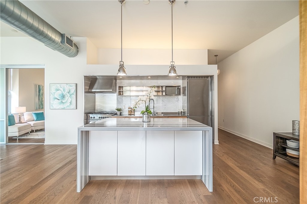 Welcome to this spacious, modern two bedroom/two bathroom loft located in an architecturally beautiful building in the heart of the Marina Arts District. As you enter this sophisticated corner unit loft, the entryway takes your gaze to an open concept floor plan featuring 11 foot ceilings, gorgeous floor to ceiling windows, wood floors, and a large balcony ideal for indoor/outdoor living. The chef’s style kitchen is adorned with high-end finishes, Italian appliances, gleaming wood cabinets, and a custom-designed marble kitchen island. Off to either side of the spacious living area are two private bedrooms, each with their own bathroom. The master suite showcases additional windows that provide extensive natural light, and the master bathroom is highlighted by a soaking tub and walk-in shower. A community common area allows for additional entertainment space equipped with BBQ’s, seating and fire pit. This loft is ideally located with a walk score of 86, only a short distance to your choice of six different grocery stores, and the chic boutiques and restaurants of Abbott Kinney and the Marina. There's easy access to bike paths, multiple parks, cafes, and entertainment.