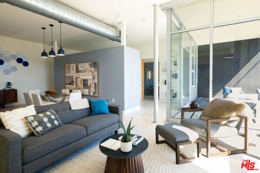 Experience the perfect blend of modern design and creative energy at Gallery Lofts, located in the heart of the vibrant Marina Arts District. Currently confirgured as a spacious 2-bedroom, 2-bathroom second-floor loft-style home which showcases south-facing views, soaring ceilings, dramatic floor-to-ceiling windows, and oversized Fleetwood sliding doors that flood the space with natural light and fresh coastal breezes. Step inside to an open-concept layout that balances style and functionality. The sleek kitchen is equipped with stainless steel appliances ideal for culinary inspiration or everyday dining. A generous private patio seamlessly extends the living area outdoors, perfect for morning coffee or relaxing evenings. The primary suite provides a peaceful retreat with a spacious walk-in closet and a spa-inspired bathroom featuring a soaking tub and separate glass shower. Additional highlights include automated window shades, central A/C and heat, a tankless water heater, in-unit laundry, and 2-car tandem parking with exclusive-use EV charging pre-wiring, plus ample guest parking. Set within a beautifully landscaped community, Gallery Lofts offers residents access to a tranquil outdoor lounge, complete with BBQ grills, a welcoming space to entertain, mingle with your neighbors or unwind under the stars. Located just minutes from Venice Beach, Abbot Kinney, and Playa Vista, this home is surrounded by Marina del Rey's best lifestyle amenities: bike paths, boutique shopping, local theaters, dining hotspots, and daily conveniences. This is modern coastal living at its finest, offering a rare opportunity to enjoy the best of both urban energy and seaside serenity.