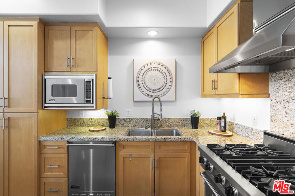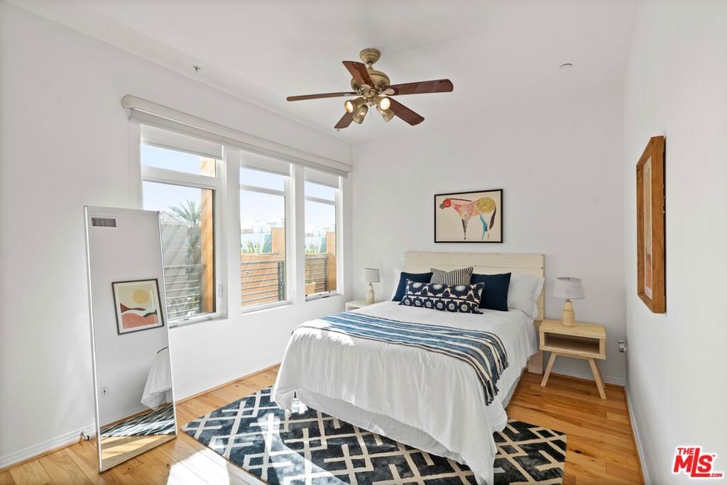 Contemporary Coastal Condo in the Marina Arts District! Located in the extremely coveted Indigo building and situated only minutes from the sparkling Pacific, this 2BR/2BA, 1,390 sqft top-floor residence includes a separate den or 3rd bedroom and abundantly impresses with an organically flowing floorplan, soaring ceilings, a crisp color scheme, beautiful hardwood floors, and a glamorous living room with a cozy gas fireplace and access to a private patio with peek-a-boo cityscape views and scintillating floor-to-ceiling windows. Thoughtfully fashioned for memorable entertaining, the open concept kitchen features granite countertops, stainless-steel Viking appliances, gas range, gorgeous wood cabinetry, French door refrigerator, built-in microwave, dishwasher and an island with storage. Conveying tranquil vibes, the primary bedroom stuns with high ceilings, multiple symmetrical windows, tons of closet space, and an attached en suite with a soaking tub, a separate glass enclosed shower, a water closet, and a dual sink vanity. One extra bedroom provides comfort and style for overnight visitors or children, while the full guest bathroom elevates self-care routines. Other features: 2 separate parking spaces, large in-unit laundry room, tons of closet space, community spa, sauna, gym, firepit, and BBQ grills, close to entertainment, dining, shopping and more!