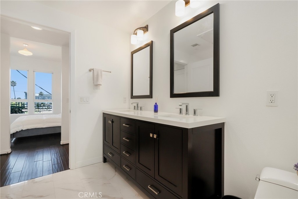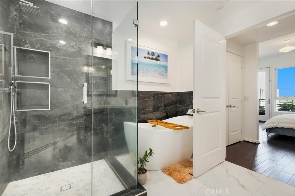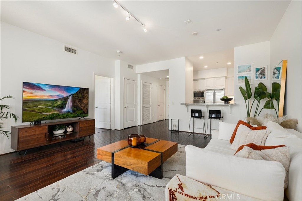 Welcome to this stylish and beautifully updated top-floor end-unit 1-bedroom, 2-bathroom condo located in one of Marina del Rey’s most desirable modern complexes. Just 1.8 miles from Venice Beach and 1 mile to the Marina, this home blends luxurious comfort with a vibrant coastal lifestyle. Situated in a premium location within the community, this top-floor end unit offers enhanced privacy and an abundance of natural light.Step inside to find gorgeous hardwood floors, an inviting fireplace, and an open-concept layout that leads to your private balcony—perfect for relaxing or entertaining. The gourmet kitchen features sleek granite countertops and a premium Viking appliance package, while both bathrooms have been thoughtfully renovated, including the spa-like primary suite with a soaking tub, oversized shower, and dual vanity.Additional highlights include an in-unit stackable washer and dryer, two dedicated subterranean parking spaces, and a large private storage unit. The secured building offers resort-style amenities such as a fitness center, jacuzzi, steam room, BBQ grills, outdoor firepit, dog run, and a resident meeting room with WiFi. Key fob or code access ensures peace of mind.Enjoy the best of coastal living with modern amenities and an unbeatable location—your Marina del Rey lifestyle starts here.