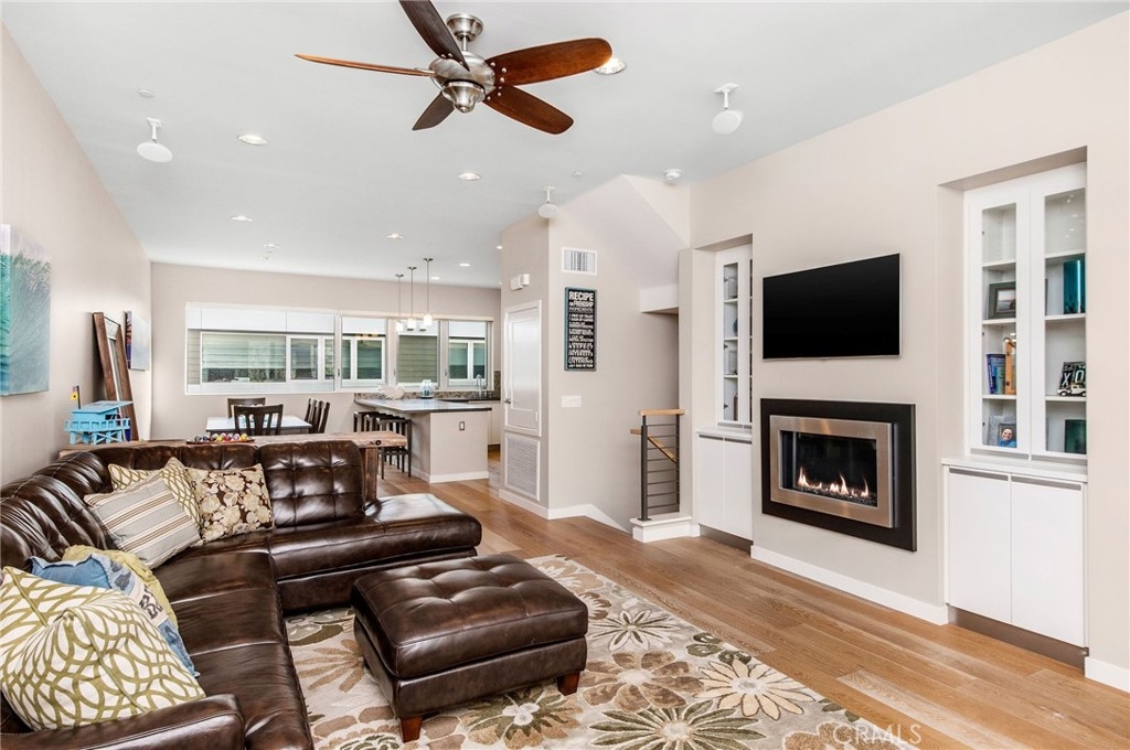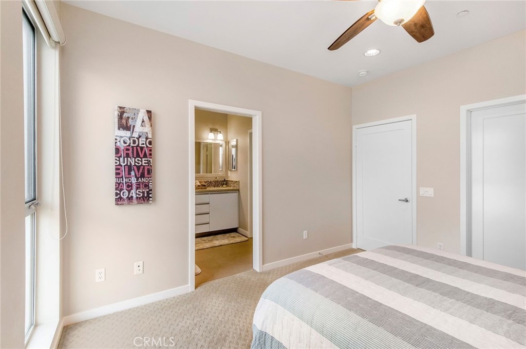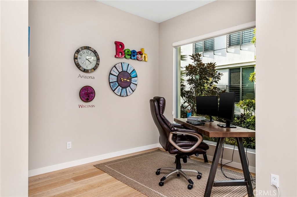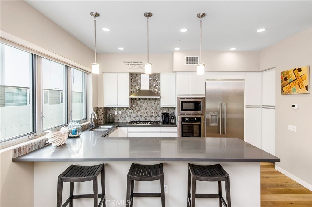 Enjoy the coastal lifestyle in this exquisite 1,960 sq ft townhome that includes 3 bedrooms, 3 bathrooms and 3 levels of stunning finishes. It is located in the desirable Beach Collection of Latitude 33 and is in immaculate condition. The open floor plan features a Chef’s Kitchen with a spacious island, top of the line appliances including a Thermador refrigerator, Bosch 5 burner gas range and Bosch stove. The great room has a fireplace, a wall of light from the windows, multi zone surround sound, ceiling fan, built in bookshelves and an office area. Upgrades include wide plank hardwood floors and custom window treatments throughout the home. There are two spacious bedroom suites with walk in closets, floor to ceiling windows and ceiling fans. Master bathrooms include Quartz counters, double sinks and a jetted tub. The entry level third room can be used as a bedroom, office or den and has direct access to the patio and a bathroom. Laundry room is conveniently located on the top level. The private outdoor patio offers seating with ocean breezes and space for the BBQ. The 2 car garage includes a smart garage door opener and cabinets. Notable Features: Air conditioning, Alarm System and Elan Smart Home system which allows you to control your alarm, thermostat and door camera remotely. Private community with concierge services, guest parking, gym and security. Located a few blocks from the beach, the boardwalk, Abbott Kinney, fine dining and just minutes to LAX. .