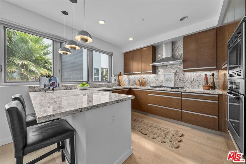 Experience modern coastal living with a rare blend of privacy, design, and walkability in this sun-filled corner residence overlooking the iconic Grand Canal in Marina del Rey. This multi-level townhouse offers privacy, light from dual exposures, and an inviting indoor/outdoor lifestyle just moments from the beach. The open-concept main level features a spacious living area framed by large windows, warm oak hardwood floors, custom walnut built-ins, and a chef's Thermador kitchen ideal for both entertaining and everyday comfort. A private outdoor patio extends your living space perfect for morning coffee, evening wine, or relaxing with the Canal views & the Ocean just moments away. The top-floor primary suite is a true retreat featuring a spa-caliber bath with a steam shower, jet tub, double vanity, and a generous walk-in closet. A separate first-floor suite with its own entrance offers ideal flexibility for guests, an adult child, or a dedicated home office space. An attached private two-car garage with EV charger rare for the beach area adds unmatched convenience. Residents enjoy 24-hour concierge/security, guest parking, and a fitness center, along with seamless access to coastal walking paths, Venice Pier, Abbot Kinney, the Marina, boutiques, coffee shops, and some of the best dining. Move-in ready, architecturally modern, and moments from the ocean this is refined coastal living in one of Marina del Rey's most desirable locations.