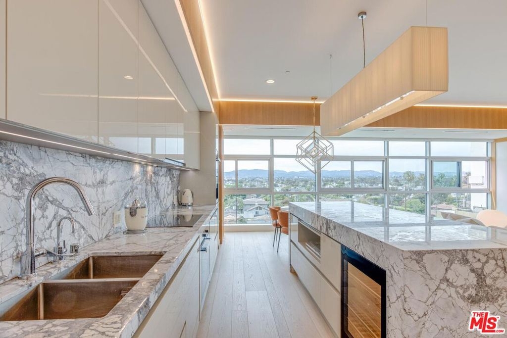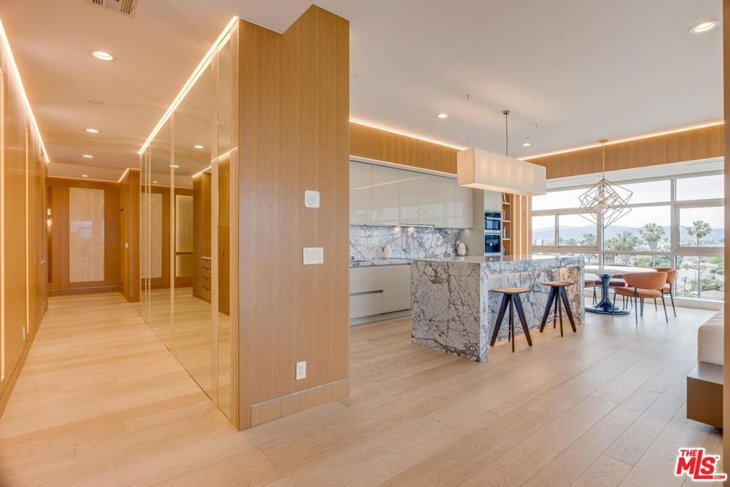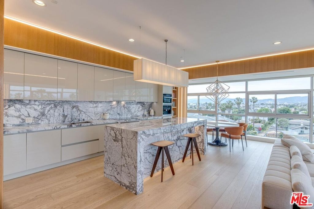 Truly one of a kind corner unit in the Luxury Latitude 33-Sky Flats. Floor to ceiling windows with stunning views of the ocean and the mountains. The home is equipped with smart system throughout and high-end upgrades with no details overlooked. This two bedrooms and 2.5 bath unit has everything you will need with a push of a button, recessed and LED lights, Hunter Douglas blinds, Miele appliances, with Wi-Fi connection, LG styler smart steam closet with steam and sanitize cycle and so much more. The kitchen is fully equipped with all Miele appliances, a large marble island, as well as marble counter tops. Built-in coffee maker, wine cooler, electric cook top, custom Miton Italian cabinets. Open floor plan with full of natural light and amazing views from every room. Master in-suite offers large bedroom, Italian freestanding stone tub, marble walk-in shower with glass doors, double sinks, walk-in closet with custom built-ins. Second bedroom with its own bathroom, smart mirrors with WI-FI, ToTo Neorest EW wall-hung toilets & bidet with auto open/close lid, heated seats and self-cleaning technologies in all three bathrooms. Hallway offers custom built closets with wood and marble accents. Dayoris soundproof doors in all the bedrooms as well as bathrooms. The building offers a concierge, gym, and guest parking. The unit also comes with two side-by-side parking spaces as well as a Tesla super charger. The unit is located a few blocks away from the beach, shops, restaurants, Venice Canals and Abbot Kinney. The Seller may be interested in selling Minotti Italian furniture with the right offer.