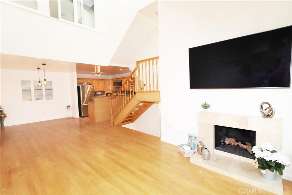 Steps to the sand, Pier, Venice Canals, restaurants and coffee shops on the Marina del Rey Peninsula! This amazing light and bright townhome with its wonderful beachy feel is just what have been looking for! Open the front door and see gleaming hardwood flooring flowing to the spacious living room with its stylish fireplace, wall of windows and soaring ceiling! As you move into the dining area you will see the mariner style pendant lights and upgraded kitchen with recessed lighting, granite counters, double sink, and stainless steel appliances. Checkout the spectacular master suite on its own level featuring a chic fireplace, recessed lighting, private patio, massive walk-in closet with built-ins, and beautifully remodeled master bathroom. Spacious secondary bedroom, versatile bonus room/office/third bedroom and stylishly remodeled hall bathroom with glass tile and sink! Freshly painted interior as well as hardwood flooring and brand new neutral contemporary carpeting! Washer and dryer in the unit! Low HOA!