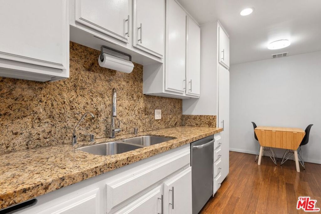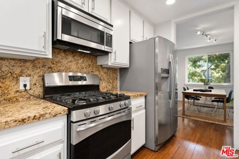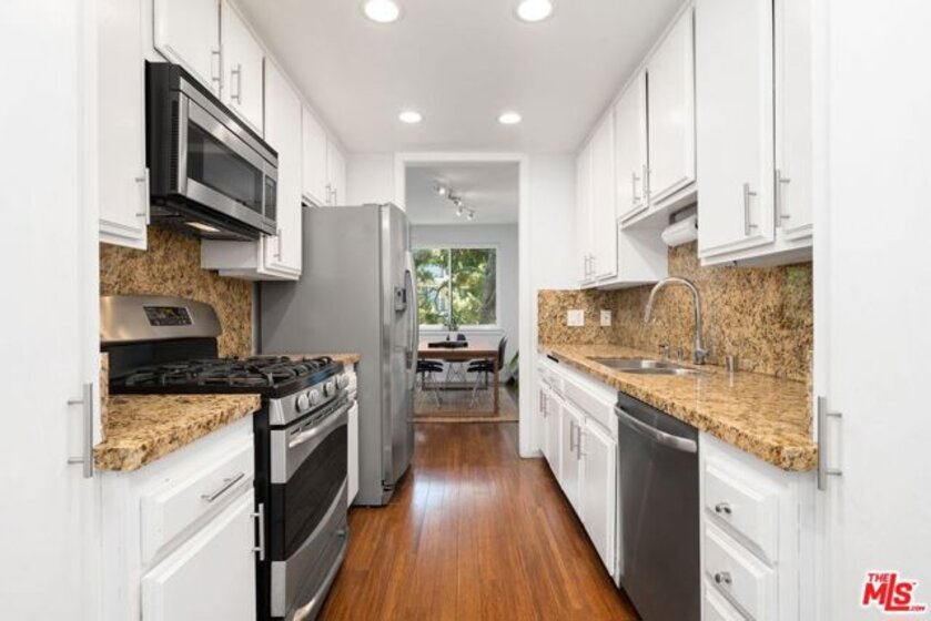 Enjoy resort-like living in this nearly 1,500 square feet updated corner unit with 2 balconies in the highly desirable Silver Strand neighborhood of Marina del Rey. Double doors open to a formal entry with large closets. A spacious and airy living/dining area has beautiful hardwood flooring, a gas fireplace, recessed lighting, high ceilings, and sliding doors that open to a generous balcony. A thoughtfully designed office nook tucked into the living room offers a dedicated workspace - perfect for remote work, study, or creativity. The galley kitchen is equipped with stainless steel appliances, granite countertops, a breakfast nook, and ample cabinet and counter space for cooking and entertaining. Unwind in an expansive main bedroom with its own private balcony, a walk-in closet, and a spa-inspired en-suite bathroom with a beautifully updated dual vanity, a separate shower and a soaking tub. The generously sized second bedroom with large closets makes a great guest retreat. From the hallway is a modern second bathroom with walk-in shower. Practical touches such as 2 dedicated side-by-side parking spaces, an in-unit laundry room with washer and dryer and an additional closet, double pane windows, central HVAC, controlled access with intercom, and an extra storage space outside the unit, help simplify your life. Residents enjoy access to luxurious indoor and outdoor amenities including a year-round heated pool and spa, two tennis courts, a pickleball court, fitness center, elevators, a recreation room, and dry saunas. This vibrant coastal community is located minutes from Abbot Kinney Blvd, Venice Canals, great restaurants and shops, water taxi, Trader Joe's, bike path, farmer's markets, Runway Playa Vista, Santa Monica, and Culver City.