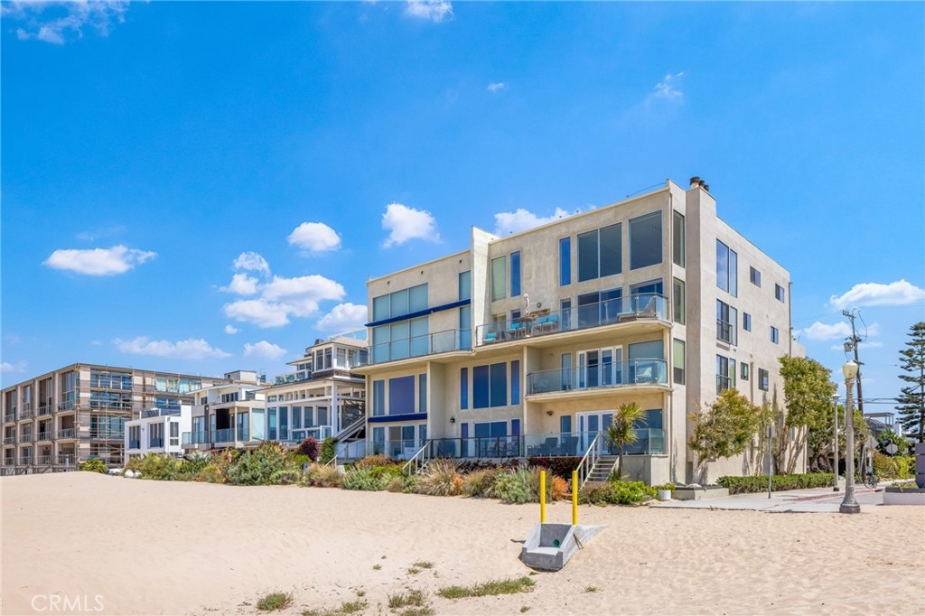Once in a lifetime opportunity to live on the beach in California's coveted community of the Marina Peninsula. Crossing the threshold of this private beach paradise you are met with an abundance of natural light, breathtaking views and fresh ocean air. Savor the sunrise of your beach vista through the two story wall of glass or lower the top to bottom curtains for a more intimate setting. Just imagine preparing meals in the open kitchen while watching friends and family play on the beach. Did we mention how incredible the sunsets are from the living room which has a beautiful fireplace to warm those nights at the beach. The open floorplan accesses the more private side patio or front balcony with its retractable sun shade awning. Step down from the balcony onto your garden oasis on the beach. The privacy provided by the lack of a public walkway in front of the house gives you direct uninterrupted beach access. The main living area has a one bedroom with hardwood floors, wainscoting panel walls with plantation shutters and the en suite bathroom has a marble shower and sink vanity. Upstairs you will enter the primary bedroom with ocean views that have glass sliding doors and plantation shutters to close off the main level below or open up to entertain. Its private bathroom has a luxurious jetted shower tub with an ocean view prefect for an evening glass of wine. The upper level consists of 2 more spacious bedrooms that share a bathroom with a marble shower enclosure. Off the main level included with this property is a separate office great for working from home but still being sepreate. A truly unique feature is the multi level elevator access to all floors. Also, included with this home are 2 secured side by side parking spaces rounding off this spectacular beachfront property.