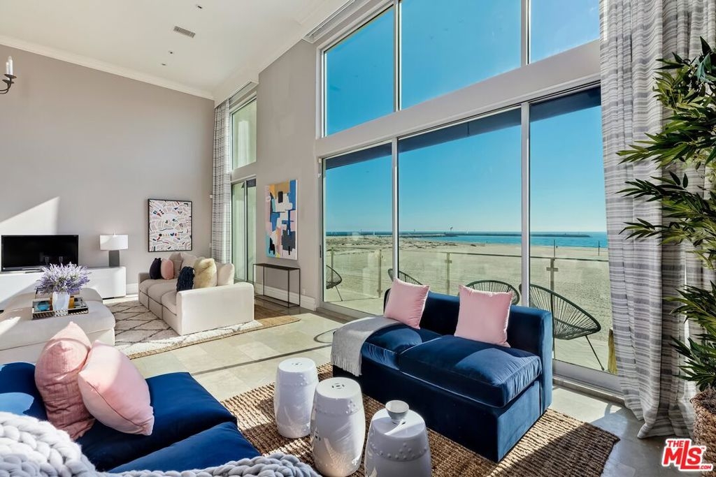 Once-in-decades opportunity to own this exceptional trophy penthouse in one of California's most desired oceanfront and on-the-sand locations. Enjoy unobstructed front-row ocean views of the Queens Necklace from Pt. Dume to Palos Verdes and all the way to Catalina on clear days, from the early morning surfers catching the first breaks of the day to the golden California sunsets or a full moon illuminating the waters of the Pacific Ocean. No expense was spared by the renowned antiques dealer who owned and curated the design of this exquisite property from the marble floors and fireplace to the custom Italian kitchen & the luxurious bathrooms, including a large soaking tub in the spa-like master bath.. The main living area is gracious w/2-story ceilings and walls of glass, a rare find. This condo can easily function as a 4-bedroom or a 3-bedroom plus a study adjacent to the primary bedroom as well as 4.5 bathrooms. This location is coveted because its directly on the sand with no walkway or fenced bird sanctuary in front of the building. Also included, 2 side-by-side parking spots in secured garage, ample storage, and large balcony for indoor/outdoor California living.