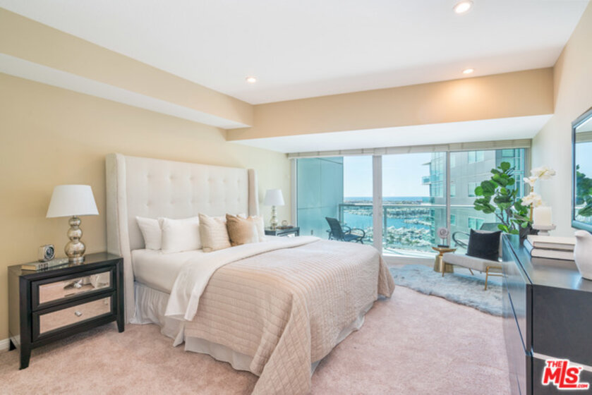 Uniquely positioned newly upgraded corner lower Penthouse unit provides gorgeous views of prime Marina, Ocean, Park, Award winning landscaped Pool Deck, City Lights and Mountains!The immaculate large open living room boasts new designer architectural carpet, a gas fireplace, walls of glass, upgraded recessed LED lighting and large sprawling balcony with BBQ hookup.Interior is in immaculate condition with new architectural carpets, and marble flooring in the entry, kitchen and all bathrooms. The maple, granite and stainless steel cook's kitchen includes gas stove top, oven, dishwasher and Subzero Refrigerator. The spacious Master Bedroom w/master bath includes direct access to a its own private balcony, sitting area and walk-in closet.To maintain privacy the Guest Bedroom is on units opposite side and has very large inclusive full bath. A full-service building provides 24-hour desk, valet, pool,hot tub, gym, sauna, rec lounge, library, theater and conference rooms.