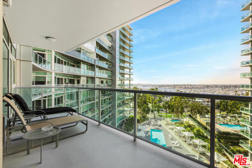 Easy California coastal living in the luxurious, full-service, resort-style, iconic Regatta Seaside high-rise. This bright 2 bedroom, 2.5 bath, 1945 Square Feet unit is situated in the premier south/west location providing unparalleled Marina and ocean views. Enjoy spectacular sunsets and gentle sea breezes. The unit features an open floor plan, high ceilings, a large master suite, spacious guest suite, all marble baths, 2 walk-in closets, direct access to the huge balcony with gas BBQ hook-up from the living room, kitchen, and master bedroom. A gourmet kitchen has quality appliances, granite counters and all maple cabinets. Be pampered by an attentive staff and enjoy all the building amenities:24-hour security, reception desk, guest valet parking, pool, spa, sauna, fitness center, screening room, conference room and more. Ideally located close to shops, restaurants, beach, beach bike path, boating, movie theaters, freeway access and LAX airport. Rare opportunity!
