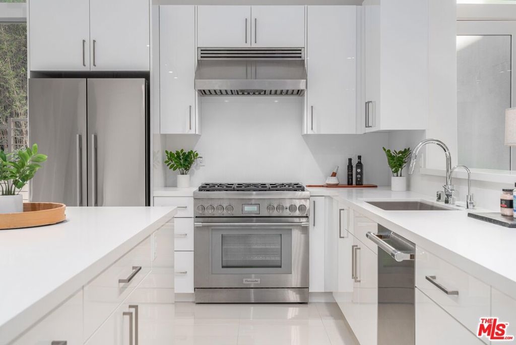 Steel Lofts - Steel Construction! This southwest facing ground floor corner unit offers an abundance of windows, two expansive sliding doors & boasts a massive wrap-around patio of about 600sq.ft & an office nook. The space is ideal to "live/work/entertain." The high ceilings provide openness and the exposed ducts give an industrial feel. Upgrades include, polished bright white Porcelanosa tiles (23x23) throughout the entire unit. A gourmet entertainer's kitchen fully renovated featuring Thermador dishwasher & kitchen range (with high btu output star burners) and oven. Fischer and Paykel refrigerator, Bosch microwave, Caesarstone kitchen countertops, backsplash fully extended kitchen island with plenty of cabinet space on both sides. Soft-close kitchen cabinets, brushed nickel handles & Silgranit kitchen sink. Upgraded bathrooms offer Porcelanosa extra-large format (47x47 inches) polished floor & wall tiles that give it a resort spa feel. The primary suite features a modern floating double sink vanity, & seamless shower enclosure with bench seating and extras such as cubby hole, double shower heads/vanity sinks, Kichler vanity lighting fixtures, nickel towel holders & full-body mirror. 2nd bathroom offers Livex vanity lighting fixture, built-in cubby hole, nickel towel holders and full-body mirror. Enjoy the oversized laundry room/ California Closets space with a full size stackable washer/dryer & new installation of hanging WAC LED lighting throughout entire unit, with entrance Kovacs LED sconce. Shade-Store floor-to-ceiling roller shades in both bedrooms and living room. Live in the Marina Arts District and a great urban lifestyle where you are moments from the theaters, high-end restaurants, and the Marina Marketplace shopping center.