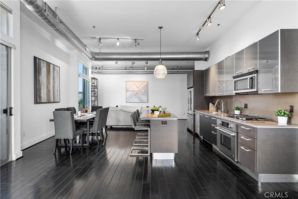 Too often, buying a home descends into making tough choices… and the toughest of all is choosing between living in the heart of the action or living in a spacious home. But at Marina del Rey’s Steel Lofts, room to roam doesn’t come at the expense of a knockout location. Unit #204 is an airy, light-flooded 1,210 SF corner unit with hardwood floors below and high ceilings & track lighting above. Even better, this industrial-inspired loft space – with just one shared wall – is located a quick stroll away from shopping, dining, nightlife, theaters and all the action of Washington Blvd. Central A/C, two full bathrooms, in-unit washer/dryer, two balconies and two reserved garage spots bring unexpected single-family-home amenities to your second-story loft in a secured building. And if your two balconies aren’t enough outdoor space for you, head on up to the communal rooftop deck with city views. It’s sure to impress. If it’s a night in you’re after, the large island kitchen with bar seating and Jenn-Air stainless steel appliances is well-equipped to handle your culinary adventures, and the open dining and gathering areas are endlessly configurable to meet your every whim. The relaxing bedroom nook even includes a sitting area that’s an ideal spot for your home office… but we understand if the Westside energy right outside your door distracts you from yet another unnecessary Zoom meeting. Unfortunately, since this generously-sized urban home boasts a price that’s possibly too low to be real, you won’t be the only homebuyer downstairs looking to get buzzed in for a peek. So make your move now before someone else *steals* (get it?) your Steel Lofts home.