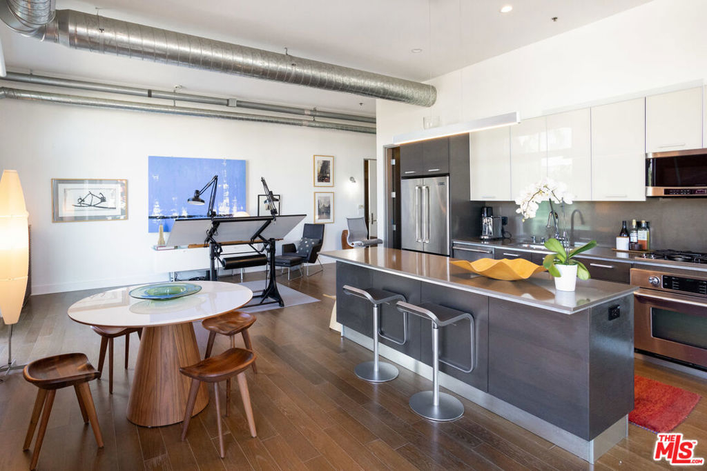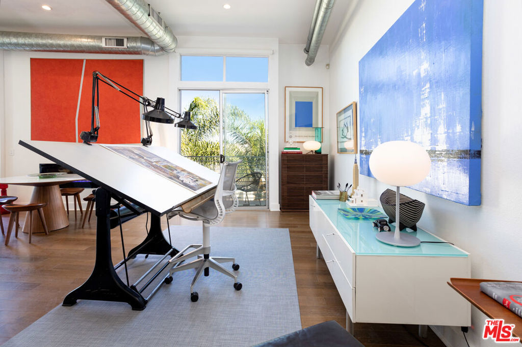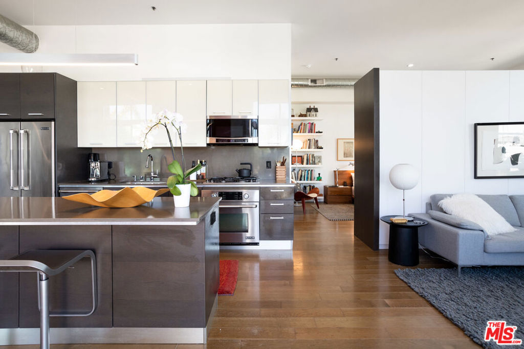 Live and work from this front facing upper corner loft with an abundant amount of natural light streaming in from floor to ceiling windows. From the moment you walk in, you feel the openness from the windows and balconies. Plus this corner layout boasts ample space for home office or opportunity to add additional sleeping area. The kitchen is filled with top of the line appliances and a large kitchen island, perfect for entertaining. Patios surround nearly the entire perimeter of this unit providing expansive city views and that California indoor/outdoor feel. The owner has made extensive upgrades to this unit. The bedroom now has privacy with a custom room divider/closet and modern shelving to enhance the design and functionality. New lighting throughout, as well as new electric shades and a built in electric fireplace all create a cozy ambiance with ease. The washer and dryer are included and unit has two parking spaces in gated garage. You really must see this one!