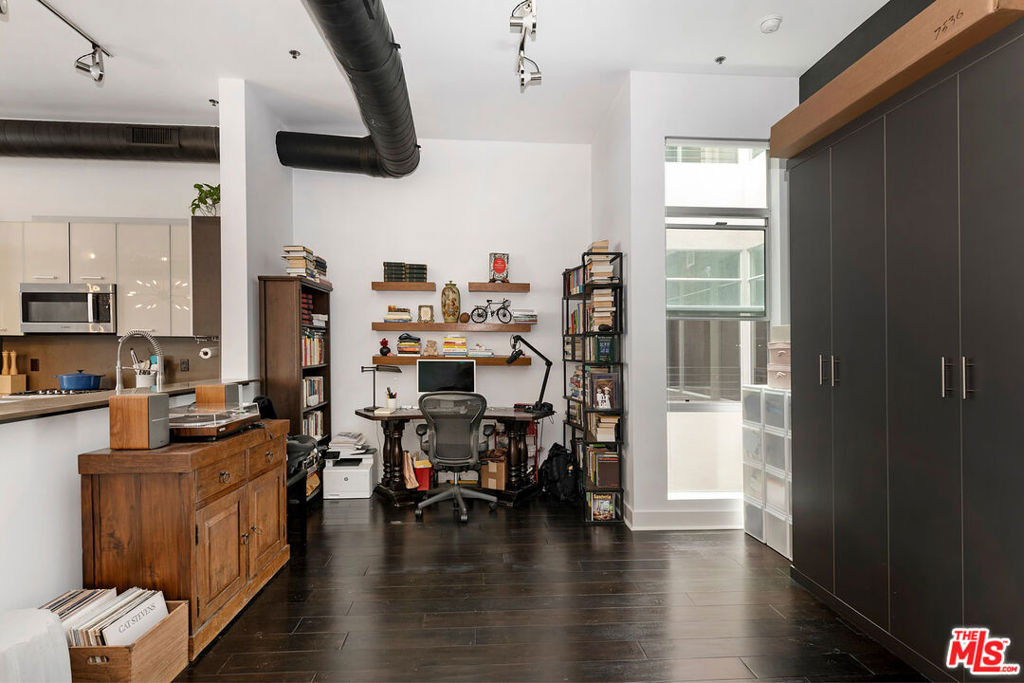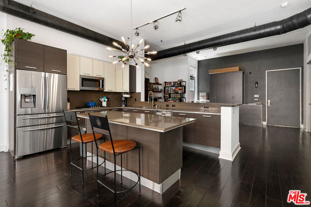Discover this modern & expansive loft in the sought-after boutique Steel Lofts building. This architecturally distinctive and intimate community is ideally located just minutes from the beach, Abbot Kinney, and a vibrant array of dining, shopping, and entertainment destinations. Situated on the third floor, this thoughtfully designed residence showcases soaring ceilings, floor-to-ceiling windows that bathe the interior in natural light, and rich hardwood floors throughout. The open and flexible layout offers the option to configure the space as two bedrooms or as a one-bedroom plus den, providing versatility to suit your lifestyle. The chef's kitchen stands out with its sleek finishes, generous island, and ample cabinetry perfect for both everyday living and entertaining. Additional highlights include in-unit laundry, abundant storage, and two dedicated parking spaces with plenty of guest parking available.With low HOA dues and a tranquil setting moments from the lively energy of the Marina, this home offers the ideal combination of coastal calm and urban convenience.