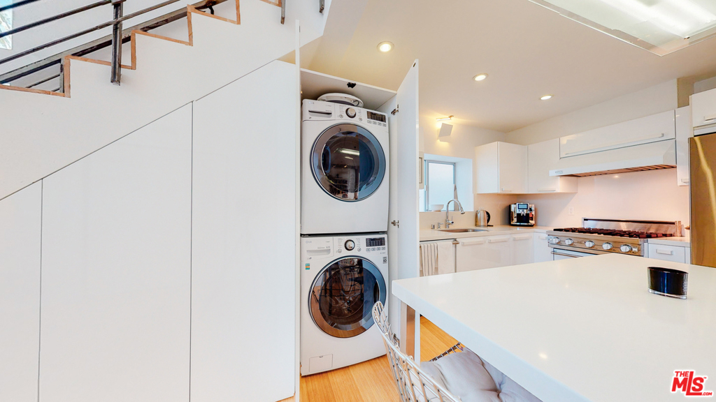 Stunning first floor corner unit located in the highly desirable Marina Arts District of Silicon Beach. The 2 story unit includes 16' floor to ceiling windows providing this modern living space with tons of natural light. Chefs kitchen includes Viking & LG appliances, quartz countertops, movable center island and custom Italian cabinetry. Imported light fixtures from Italy & Spain fill the kitchen and living room. First floor offers separate den that can be converted into an office/ 2nd bedroom, making room for plenty of creative space and customized murphy bed imported from Italy. The seamless floorplan opens up to a private patio making this grand space perfect for entertaining & indoor/outdoor living. Upstairs to primary suite features a walk-in closet and bathroom. Both contemporary bathrooms include world renowned architectural and designer finishes throughout (i.e. Phillipe Starck). Bamboo & maple hardwood floors featured throughout. Loft has laundry in unit and additional storage space. The Lofts at Beach Avenue are a 16 unit controlled access building included with 2 tandem secured parking spaces. Walking distance from Abbot Kinney and Marina Del Rey beach. A must see condo!