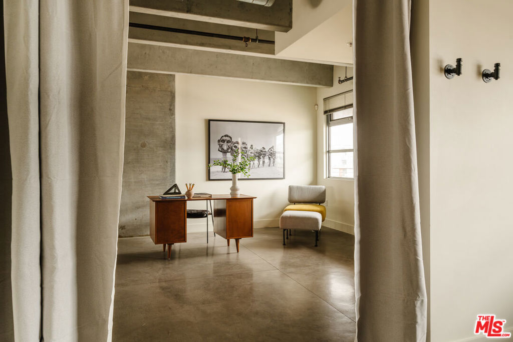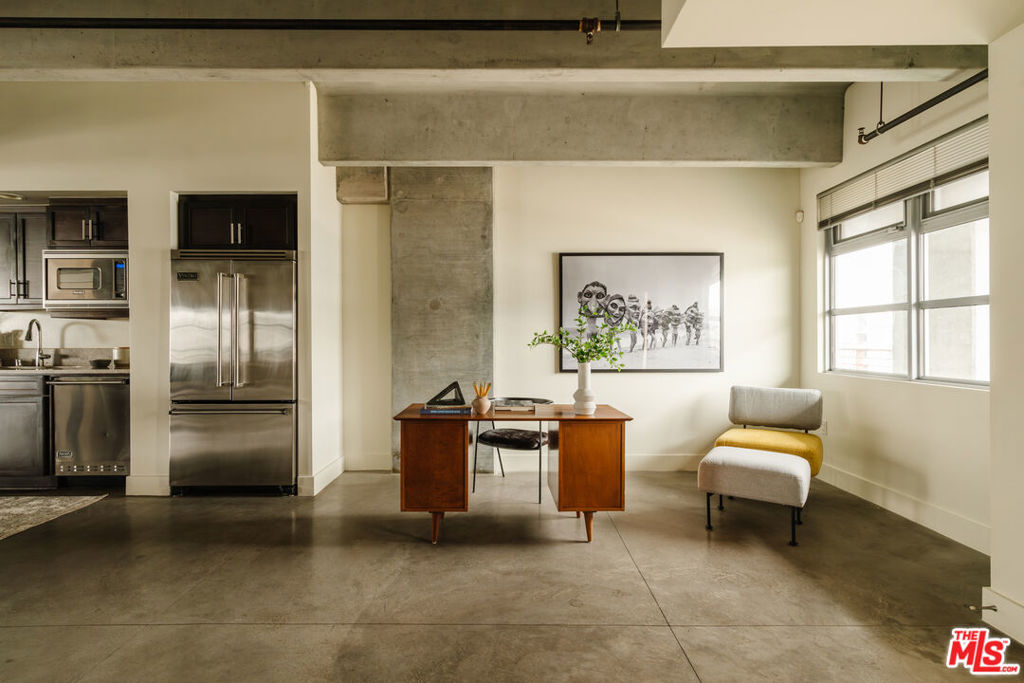 With every inch designed to inspire, this Marina Del Rey loft offers more than just a place to live it's a canvas for creativity. Designed by Cunningham Architects, this architectural gem features soaring 11-foot ceilings and exposed concrete beams, blending industrial-chic sophistication with a vibrant sense of space. Natural light floods through floor-to-ceiling windows and sliding glass doors, seamlessly connecting indoor and outdoor living on your private balcony. Step inside to polished concrete floors that complement the sleek, open-concept design. The gourmet kitchen is a chef's dream, featuring Viking Professional appliances, rich walnut cabinetry, quartz countertops, and a portable chef's prep island, perfect for hosting gatherings in the adjacent dining area. The first bedroom is a tranquil escape with a custom built-in closet, and across the hall is a flexible office or creative space, offering endless possibilities. The second bedroom is conveniently located next to the spa-inspired main bathroom, which boasts a luxurious double walk-in shower, a soaking tub, and dual vanities, adding a sense of relaxation and style. Smart home features, including a TV projector, central heat and air, and app-controlled building access, enhance convenience and modern living. An in-unit LG washer and dryer provide practical comfort. The Element building adds to the allure with premium amenities such as a fitness center, fire pit, BBQ deck, and two elevators. Maximum security and convenience are ensured with controlled access, cameras, two dedicated parking spaces, EV charging stations, and ample guest parking. Ideally located in the vibrant Marina Del Rey Arts District, this home offers easy access to the best of the Westside, including Abbot Kinney's renowned restaurant corridor, Equinox Gym, and the Marina. Just three blocks from Marina Del Rey Harbor and a short drive from LAX, Santa Monica, and Culver City, this loft effortlessly blends urban convenience with coastal living.