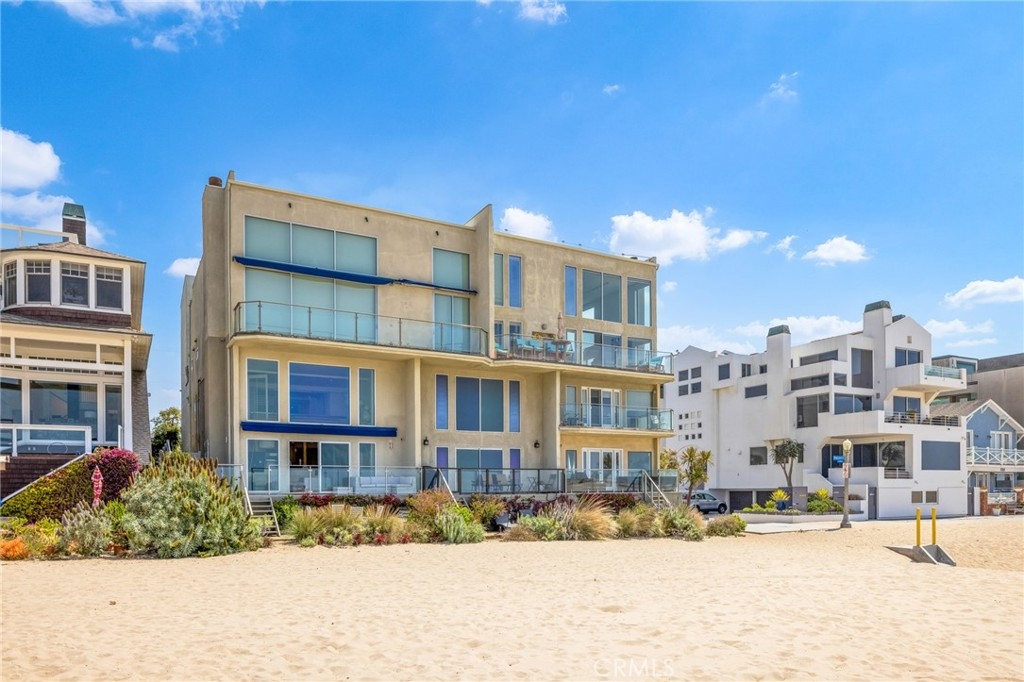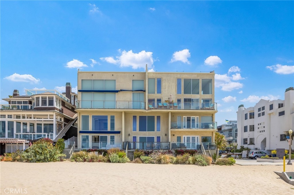 Once in a lifetime opportunity to live on the beach in California's coveted community of the Marina Peninsula. Crossing the threshold of this private beach paradise you are met with an abundance of natural light, breathtaking views and fresh ocean air. Savor the sunrise of your beach vista through the two story wall of glass or lower the top to bottom curtains for a more intimate setting. Just imagine preparing meals in the open kitchen while watching friends and family play on the beach. Did we mention how incredible the sunsets are from the living room which has a beautiful fireplace to warm those nights at the beach. The open floorplan accesses the more private side patio or front balcony with its retractable sun shade awning. Step down from the balcony onto your garden oasis on the beach. The privacy provided by the lack of a public walkway in front of the house gives you direct uninterrupted beach access. The main living area has a one bedroom with hardwood floors, wainscoting panel walls with plantation shutters and the en suite bathroom has a marble shower and sink vanity. Upstairs you will enter the primary bedroom with ocean views that have glass sliding doors and plantation shutters to close off the main level below or open up to entertain. Its private bathroom has a luxurious jetted shower tub with an ocean view prefect for an evening glass of wine. The upper level consists of 2 more spacious bedrooms that share a bathroom with a marble shower enclosure. Off the main level included with this property is a separate office great for working from home but still being sepreate. A truly unique feature is the multi level elevator access to all floors. Also, included with this home are 2 secured side by side parking spaces rounding off this spectacular beachfront property.