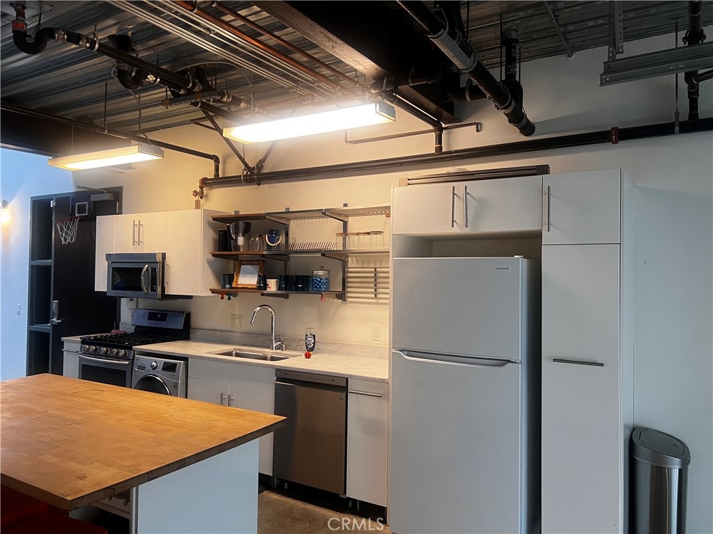 Ideally situated in the heart of Silicon Beach, this exceptional live/work residence at Princeton Lofts offers a rare blend of modern architecture, flexibility, and coastal lifestyle. Designed for today’s entrepreneur or design enthusiast, the expansive main level is filled with natural light and features soaring two-story ceilings, an industrial-grade roll-up door that invites refreshing ocean breezes, and sleek polished concrete floors—perfect for collaborative workspace or creative living. The contemporary galley kitchen is both functional and refined, showcasing marble countertops, a center island with seating and ample storage, and premium stainless-steel Viking Professional appliances, including a refrigerator and dishwasher. Upstairs, a spacious room serves beautifully as a primary bedroom or private office, highlighted by dramatic wood ceilings and a striking floor-to-ceiling window. The adjacent four-piece bathroom is thoughtfully appointed with tiled walls, a dual vanity, and a marble countertop, offering a spa-like experience. The third-level loft provides additional versatility, ideal for a conference room, secondary workspace, or a relaxing retreat at the end of the day. This distinctive Silicon Beach loft carries a unique legacy - a successful startup company was launched here in 2019 and later earned national recognition in Forbes 30 Under 30. With its iconic mural, architectural character, and inspiring history, this one-of-a-kind residence is truly not to be missed.