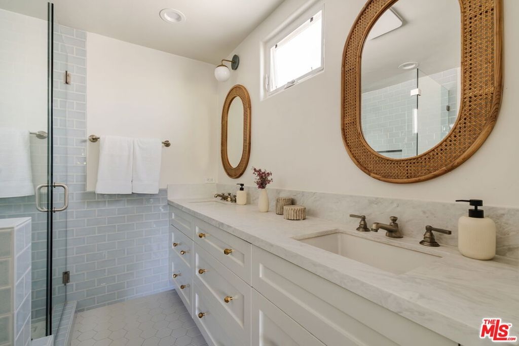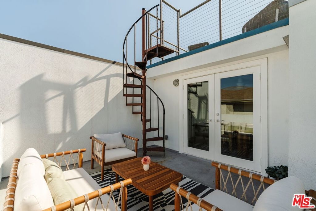 Located just 3 blocks from the beach, this elegantly remodeled 3-bedroom front facing unit, designed by Santa Monica based interior designer Christine Markatos, is located on the coveted Marina del Rey Peninsula. Contained in a boutique 2-unit building and boasting low HOA dues, coastal breezes, ocean views, and an abundance of natural light. The focal point of the home lies within its spacious dining area and generously sized living room complete with a gas fireplace, balcony and high vaulted ceilings throughout. The updated gourmet kitchen features calcutta quartz countertops, stainless steel appliances, custom cabinetry, and a generous center island. Ascend the elegant spiral staircase to find a versatile study/ media room with access to a private two-level outdoor deck, perfect for soaking in the coastal ambiance or watching the sunset. The primary bedroom offers a generous walk-in closet, glass sliding doors opening onto a balcony, en-suite bathroom with dual vanity sinks, oversized shower and ample storage. Two additional suites well-appointed for a guest-room or home office. The lower level features a private two-car garage with direct access to a versatile flex space. This multifunctional area is thoughtfully equipped with a convenient kitchenette and a well-appointed bathroom, enhancing both comfort and functionality. Outside, the gated front courtyard presents an inviting atmosphere, complete with an outdoor shower and abundant seating arrangements, ensuring ample space for relaxation and socializing. Exceptional location with incredible proximity to local restaurants, shops, theaters, and the beach. A true gem in the heart of one of L.A.'s most dynamic enclaves. Within the excellent Coeur D'Alene primary school district.