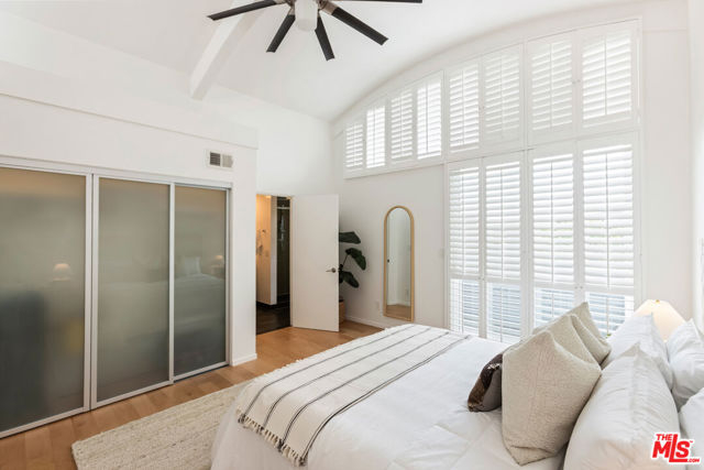 Marina del Rey living at its finest. Experience the ultimate California lifestyle in the highly desired Via Marina neighborhood. Perfectly positioned on the serene cul-de-sac of Fiji Way, this beautiful pool-view residence sits within the coveted gated community of Villa Sicilia. Blending casual sophistication with a breezy coastal vibe, the home offers the best of indoor/outdoor living. Step inside to a sunlit open floor plan with soaring ceilings, gallery-style white walls, recessed lighting, and gleaming wood floors. The inviting foyer opens to the expansive main living space, highlighted by a minimalist fireplace and dramatic floor-to-ceiling glass doors that flow seamlessly to a private patio ideal for relaxation or entertaining. The chef's kitchen is designed to impress with modern cabinetry, sleek quartz countertops, stainless steel appliances (including a double oven and gas cooktop), and a tray ceiling that adds depth and character. A spacious dining area adjoins the kitchen, perfect for hosting gatherings. Upstairs, the light-filled primary suite radiates warmth and comfort, boasting a striking barrel ceiling with exposed beams, a private balcony, ample storage, and a luxurious ensuite bath with dual vanities. Two additional bedrooms and a well-appointed hall bath complete the upper level. The private direct-access two-car garage is finished with epoxy floors and generous storage, enhancing the feel of a single-family home. Villa Sicilia offers residents lush tropical landscaping, secure gated access, and a sparkling pool, all just moments from world-class beaches, Marina waterside dining and entertainment, scenic bike paths, and shopping. This is the one you have been waiting for.