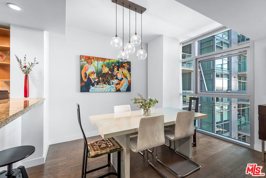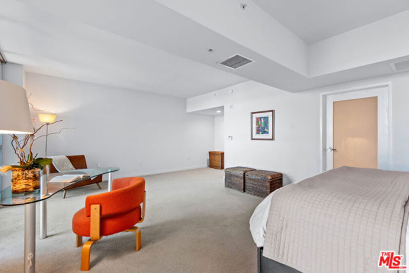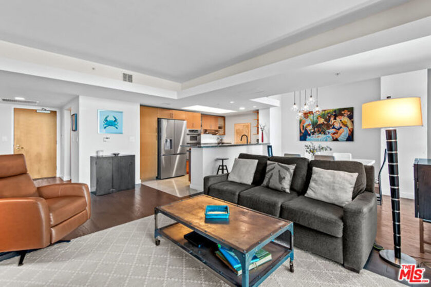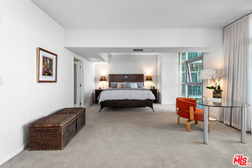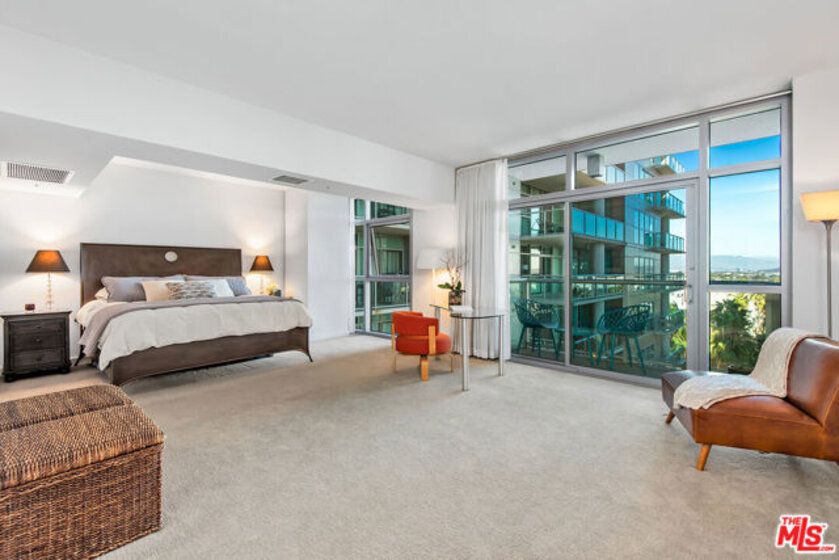 Welcome to this one-of-a-kind condo in the prestigious full-service high-rise building, Azzurra. With only 8 units like this in the entire complex, this unique and meticulously maintained home offers a loft-like feel spanning over 1,400 square feet and gorgeous city and mountain views! With an ideal open floor plan perfect for both entertaining and everyday living, it also features gorgeous hardwood floors, stainless steel appliances, tons of cabinets and counter space, breakfast bar and newer appliances. Downstairs you will find a cozy nook perfect for an office and by far the largest bedroom in the entire building! Luxurious en-suite bath has been updated and features a gorgeous walk-in shower, white cabinets, two sinks and large walk-in closet. This amazing home also offers a powder room upstairs, washer/dryer in unit, two balconies, two parking spaces and so much more! HOA fees include cable w/HD channels, internet, water, trash, earthquake insurance and an abundance of resort-style amenities -24 hour valet parking for guests, 24 hour front desk and security, concierge, rooftop spa and sky-lounge with panoramic views, outdoor kitchen with BBQ's, sparkling heated pool and spa, business center, media lounge, fine art collection, indoor/outdoor professional fitness center with yoga/pilates training studio, and more. Just seconds from world famous beaches, Marina access, LAX, parks, bike path, dog walk, Abbott Kinney, shops/restaurants, dine-in movie theater, and much more! **Property can be sold with most of the furnishings included.**