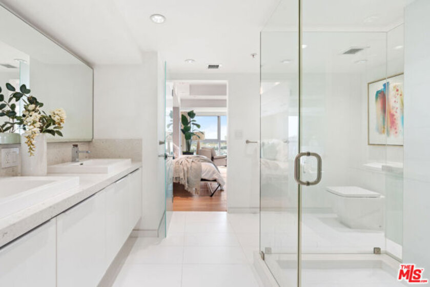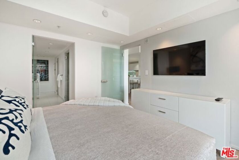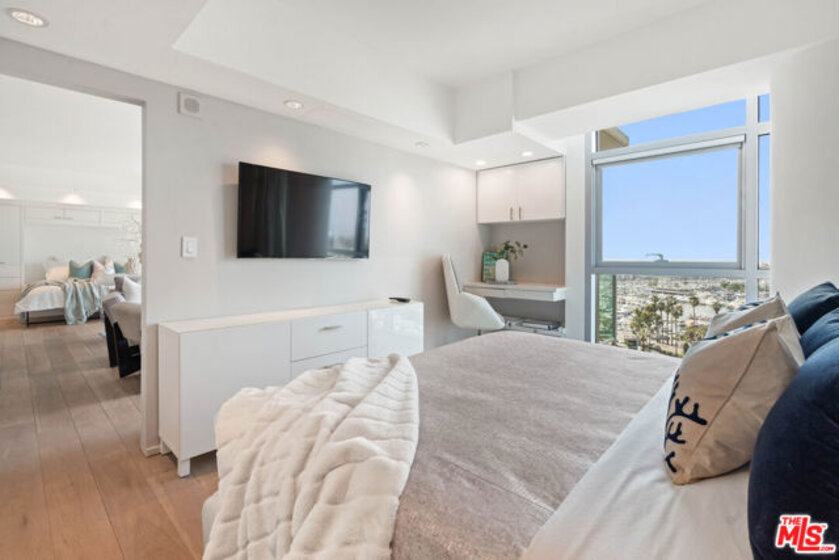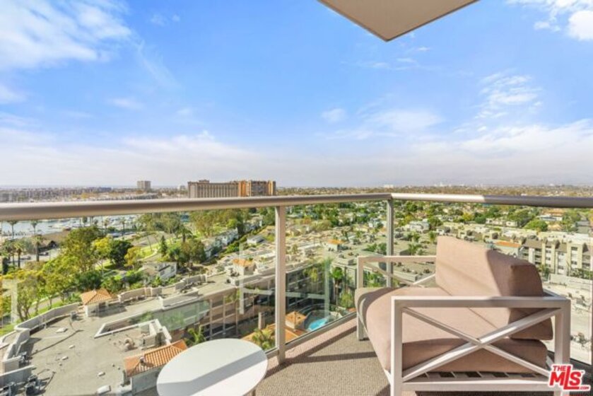 Breathtaking ,panoramic OCEAN, MARINA and SUNSET views from this turnkey, upgraded one-of-a-kind quiet, bright corner unit with balcony, nestled within the prestigious Azzurra. This unit features stainless steel appliances, glass backsplash, quartz countertops, breakfast bar, custom walk-in closets, built-ins, dedicated laundry area, Lutron lights and shades, built -inwall safe, and new water heater. Open architecture creates a grand one bedroom, easily converted with a wall or screen to a second bedroom with privacy and ample built-in storage. Included is convenient parking for 2 vehicles and a new adjacent EV charger. Enjoy concierge services, valet parking for guests, conference rooms, media lounge, pool with cabanas, indoor/outdoor gym, Pilates/yoga studio, and inviting dog park. The Sky Lounge with rooftop spa is spectacular! The Azzurra is a convenient walk to all shopping, restaurants, library, hospital and an easy10 minute drive to LAX airport!