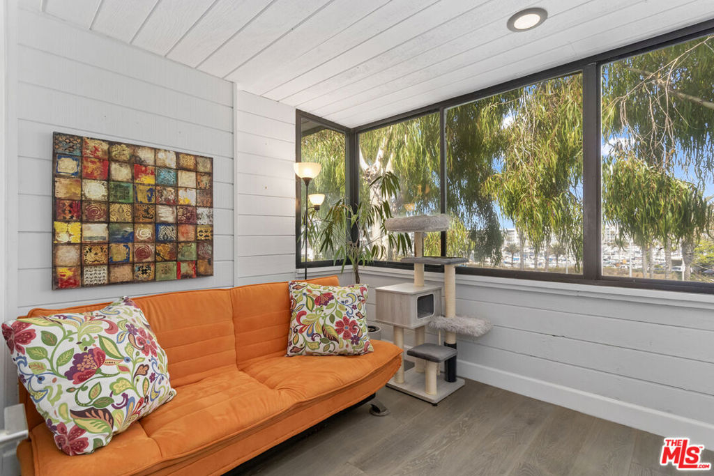 Stunning Top-Floor Marina View Condo with Bonus Office/Playroom. Perched on the top floor in one of Marina del Rey's most coveted locations, this beautifully updated, East-facing single-level unit offers sweeping views of the marina and boats. With 2 bedrooms, 2 bathrooms, and a rare bonus space perfect for an office or playroom, this home stands out on the exclusive Silver Strand, blocks from the beach. The spacious living room features soaring ceilings, white oak floors, custom-built-in, and a gas fireplace. French doors lead to an enclosed private patio/deck, and you enjoy picturesque views of the water and sailboats. The updated kitchen features quartz countertops, stainless steel appliances, and ample storage space. The primary suite includes a spa-like en-suite bath and direct balcony access, while the second bedroom offers flexibility for guests or additional workspace. Additional highlights include in-unit laundry with generous storage, two tandem parking spaces, and a private storage unit on the garage level. The secure, resort-style complex offers two pools, two spas, four tennis courts, a gym, and a community room. HOA dues cover cable (including HBO and Showtime), high-speed internet, VOIP phone service, water, trash, and earthquake insurance. Enjoy the serenity of marina living with the convenience of nearby Venice Pier and vibrant shops and restaurants along Washington Square. This is coastal California living at its finest, peaceful, elegant, and just moments from the sand.