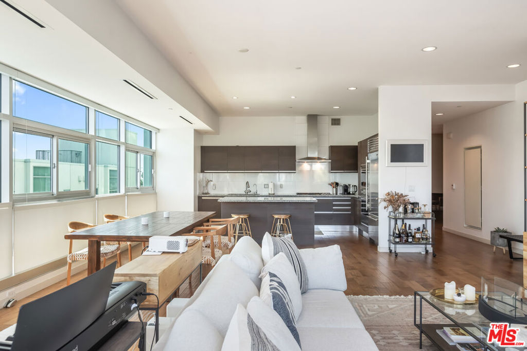 Rare southeast corner residence in the coveted Latitude 33 Sky Collection offering elevated coastal living in the heart of Silicon Beach. Floor-to-ceiling windows showcase city and mountain views with abundant natural light throughout the open-concept layout. Designer finishes include hardwood plank floors and a chef's kitchen with Sub-Zero & Wolf appliances, double ovens, wine fridge, and large island. Two private ensuite bedrooms plus a spacious den that can easily serve as a third bedroom or office. Primary suite features spa-inspired bath and oversized walk-in closet. Full-service building with concierge, 24-hour security, and fitness center. Moments from Venice Canals, Abbot Kinney, Marina del Rey, and the beach.