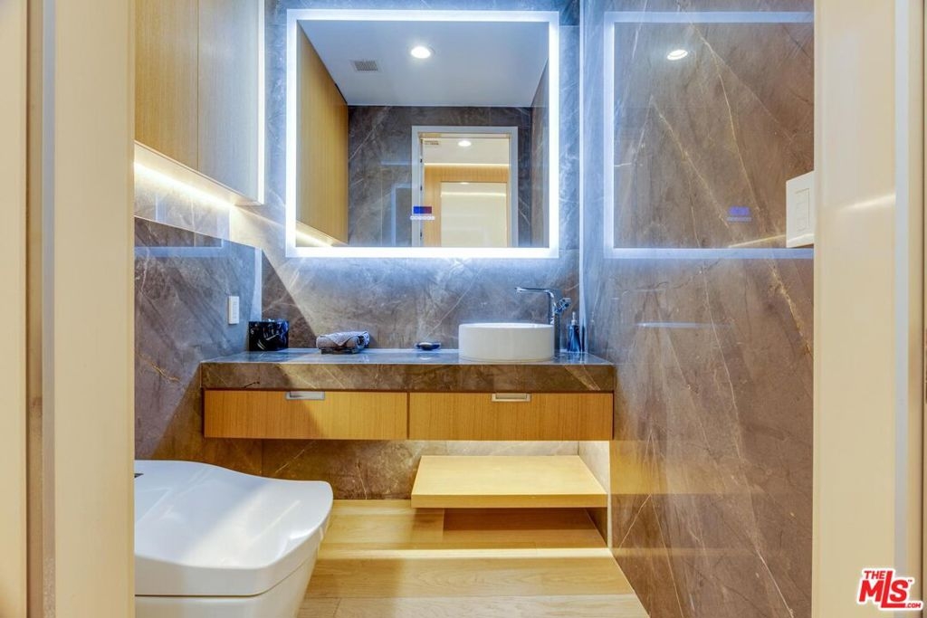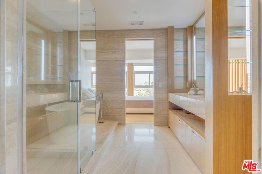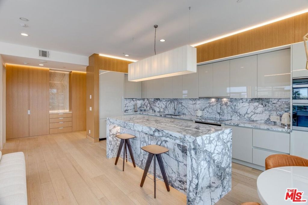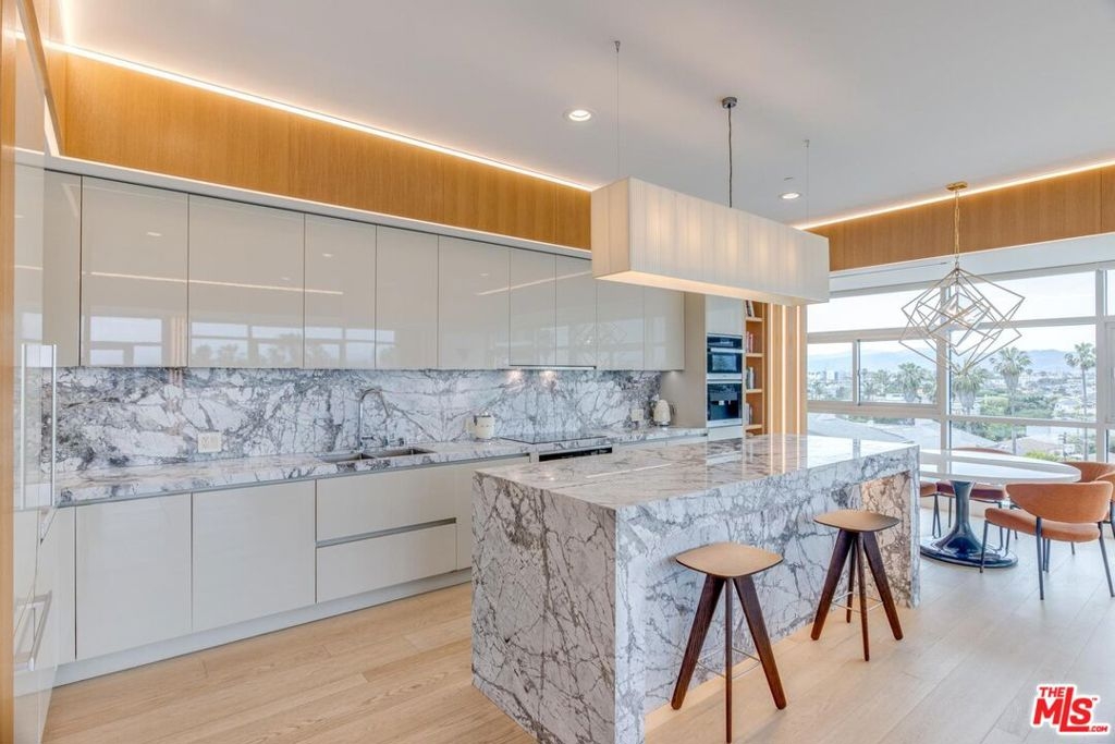 Truly one of a kind corner unit in the Luxury Latitude 33-Sky Flats. Floor to ceiling windows with stunning views of the ocean and the mountains. The home is equipped with smart system throughout and high-end upgrades with no details overlooked. This two bedrooms and 2.5 bath unit has everything you will need with a push of a button, recessed and LED lights, Hunter Douglas blinds, Miele appliances, with Wi-Fi connection, LG styler smart steam closet with steam and sanitize cycle and so much more. The kitchen is fully equipped with all Miele appliances, a large marble island, as well as marble counter tops. Built-in coffee maker, wine cooler, electric cook top, custom Miton Italian cabinets. Open floor plan with full of natural light and amazing views from every room. Master in-suite offers large bedroom, Italian freestanding stone tub, marble walk-in shower with glass doors, double sinks, walk-in closet with custom built-ins. Second bedroom with its own bathroom, smart mirrors with WI-FI, ToTo Neorest EW wall-hung toilets & bidet with auto open/close lid, heated seats and self-cleaning technologies in all three bathrooms. Hallway offers custom built closets with wood and marble accents. Dayoris soundproof doors in all the bedrooms as well as bathrooms. The building offers a concierge, gym, and guest parking. The unit also comes with two side-by-side parking spaces as well as a Tesla super charger. The unit is located a few blocks away from the beach, shops, restaurants, Venice Canals and Abbot Kinney. The Seller may be interested in selling Minotti Italian furniture with the right offer.