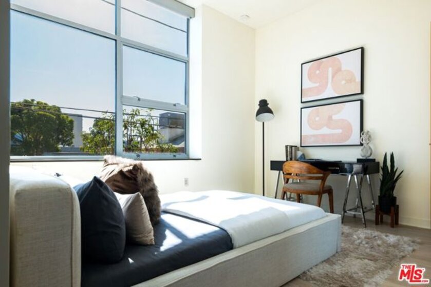 Experience the perfect blend of modern design and creative energy at Gallery Lofts, located in the heart of the vibrant Marina Arts District. Currently confirgured as a spacious 2-bedroom, 2-bathroom second-floor loft-style home which showcases south-facing views, soaring ceilings, dramatic floor-to-ceiling windows, and oversized Fleetwood sliding doors that flood the space with natural light and fresh coastal breezes. Step inside to an open-concept layout that balances style and functionality. The sleek kitchen is equipped with stainless steel appliances ideal for culinary inspiration or everyday dining. A generous private patio seamlessly extends the living area outdoors, perfect for morning coffee or relaxing evenings. The primary suite provides a peaceful retreat with a spacious walk-in closet and a spa-inspired bathroom featuring a soaking tub and separate glass shower. Additional highlights include automated window shades, central A/C and heat, a tankless water heater, in-unit laundry, and 2-car tandem parking with exclusive-use EV charging pre-wiring, plus ample guest parking. Set within a beautifully landscaped community, Gallery Lofts offers residents access to a tranquil outdoor lounge, complete with BBQ grills, a welcoming space to entertain, mingle with your neighbors or unwind under the stars. Located just minutes from Venice Beach, Abbot Kinney, and Playa Vista, this home is surrounded by Marina del Rey's best lifestyle amenities: bike paths, boutique shopping, local theaters, dining hotspots, and daily conveniences. This is modern coastal living at its finest, offering a rare opportunity to enjoy the best of both urban energy and seaside serenity.