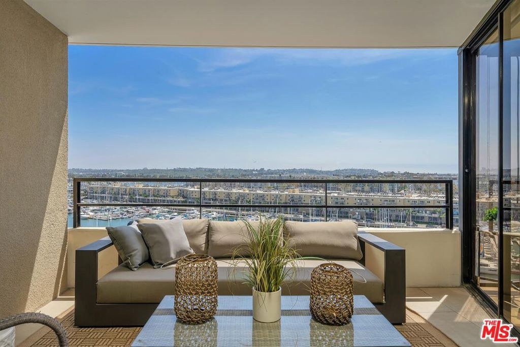 Panoramic views of Ocean, Mother's Beach and boat harbor. The minute you walk into this unit you really feel that you are on vacation! Totally move in unit with remodeled kitchen and bath. Paver floors throughout the unit. Large island, perfect for dining and entertaining.. The primary bedroom has panoramic views, along with the balcony with direct access from both the living room and bedroom, Marina City Club has 6 tennis courts, 2 paddle tennis, 3 racquetball, and 3 pools. On top is a large gym, changing rooms w/ sauna and steam, and fitness classes each day. Restaurant, room service, full service beauty salon and 24 hour security. Walk to restaurants, beach and grocery stores.