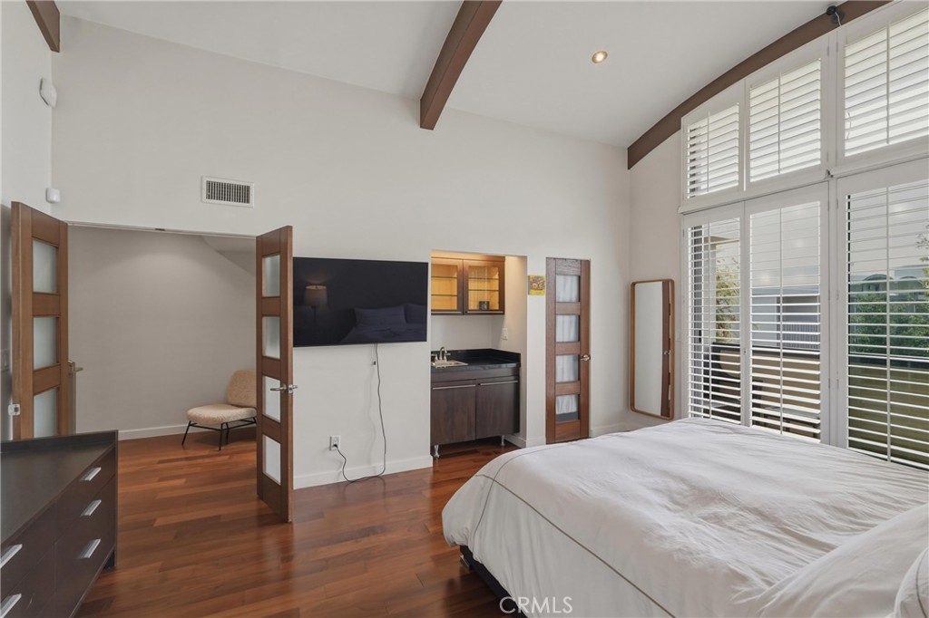 Offer Fell Through ! Best priced 3-Bedroom in the community ! Expertly re-imagined after the renovation ! One of a kind ! Must see ! Over $100K in Upgrades! Walk to the beach ! This rare, completely remodeled 3-bedroom, 2.5-bath extraordinary residence is the model home of this exclusive community, and located in a cul-de-sac that offers direct pool and garden views from both the private balcony and patio. Upon entry, you’re welcomed by an elegant, expansive formal entryway leading into a grand living space centered around a stunning fireplace over beautiful hardwood floors, soaring ceilings, recessed lighting, & floor-to-ceiling windows and doors flood the home with natural light, creating a seamless indoor-outdoor lifestyle. Step onto the private deck overlooking the sparkling pool and lush gardens with pool views perfect for entertaining or relaxing.The chef’s kitchen has been doubled in size compared to standard community models. Designed for both function and style, it features top-of-the-line Thermador stainless steel appliances, a large center island with breakfast bar, stone countertops, custom cabinetry with built-ins, pot-and-pan drawers, a spacious pantry & abundant storage. The kitchen opens to dining area, with walk-in pantry and office space. Primary suite is a true retreat, boasting soaring beamed ceilings, a private balcony with serene pool views & an oversized custom walk-in closet. The luxurious primary bath offers a spa-like escape with a step-in steam shower, custom countertops, & humidity controls. The second & third bedrooms are generously sized, light-filled & served by a beautifully appointed full bath & accessible by the extra-wide floating staircase.Additional highlights include a 3-car garage with EV charging, plus A/C, central heating, Lynx BBQ & an oversized bonus room ideal for storage or flexible use. Unlike other floorplans in the community, all hallways & staircases have been expanded & widened, enhancing both flow & comfort. Additionally, this home has extra insulation.Located in one of Marina del Rey’s most sought-after communities, HOA includes water, grounds maintenance, heated pool, spa, controlled entry, and private security. Enjoy walkable access to Waterside Plaza, theaters, premier dining, shopping, grocery stores, parks, beach, bike path to Manhattan Beach & the new Cedars Sinai hospital—right in the heart of Silicon Beach. Walking distance to the top-rated Short Elementary School.