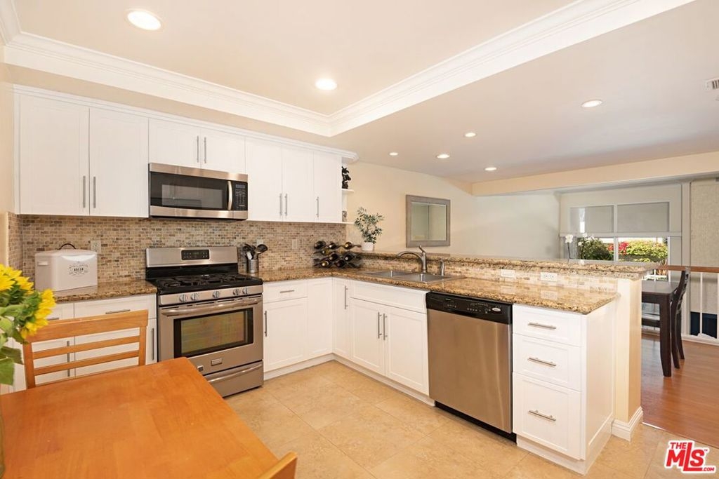 Light and airy mid-century modern townhome - perfectly located in Marina Del Rey. This recently remodeled home features an open floor plan with soaring ceilings and air conditioning. The welcoming living room has a fireplace and leads to an oversized patio which is just steps from the gleaming salt water pool and beautifully landscaped common areas. The eat in kitchen features stainless steel appliances, granite counters, custom backsplash and beautiful white shaker style custom cabinets. Off the kitchen is a half bath and laundry room. On the second level are three bedrooms including a master en suite, featuring a barrel-vaulted ceiling and clearstory windows w/remote controlled shades. Off the master bedroom is a large balcony with mountain views and spa like bathroom with granite counters and an abundance of closet space. There are an additional two bedrooms and a full bath. This townhome also features a direct entry, private 2 car garage with lots of storage. Just a short walk away are shops, world-class restaurants, a movie theater, coastal bike path, and the beach.